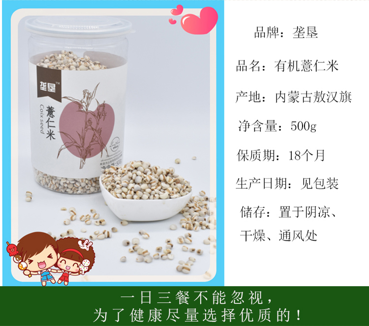 商品名称:(巨邦佑)BJ+垄垦有机薏仁米500g*2 内蒙古敖汉杂粮
