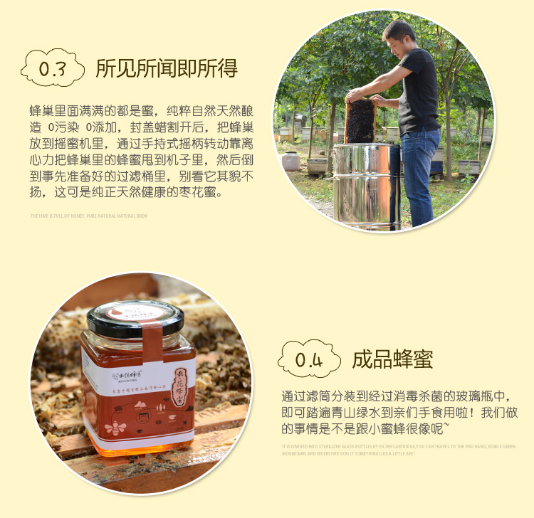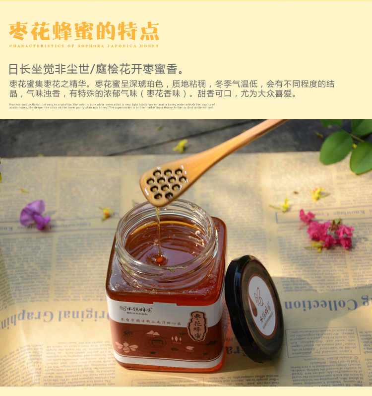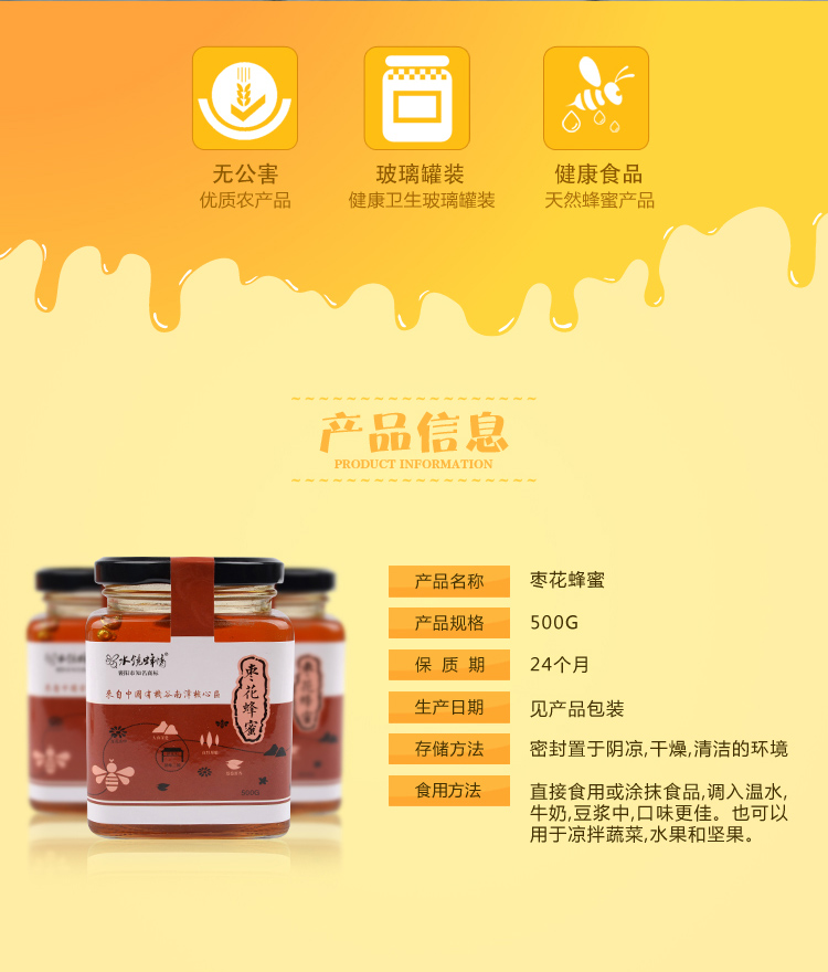商品名称:(巨邦佑)BJ+水镜蜂情枣花蜂蜜500g 质地粘稠甜香可口