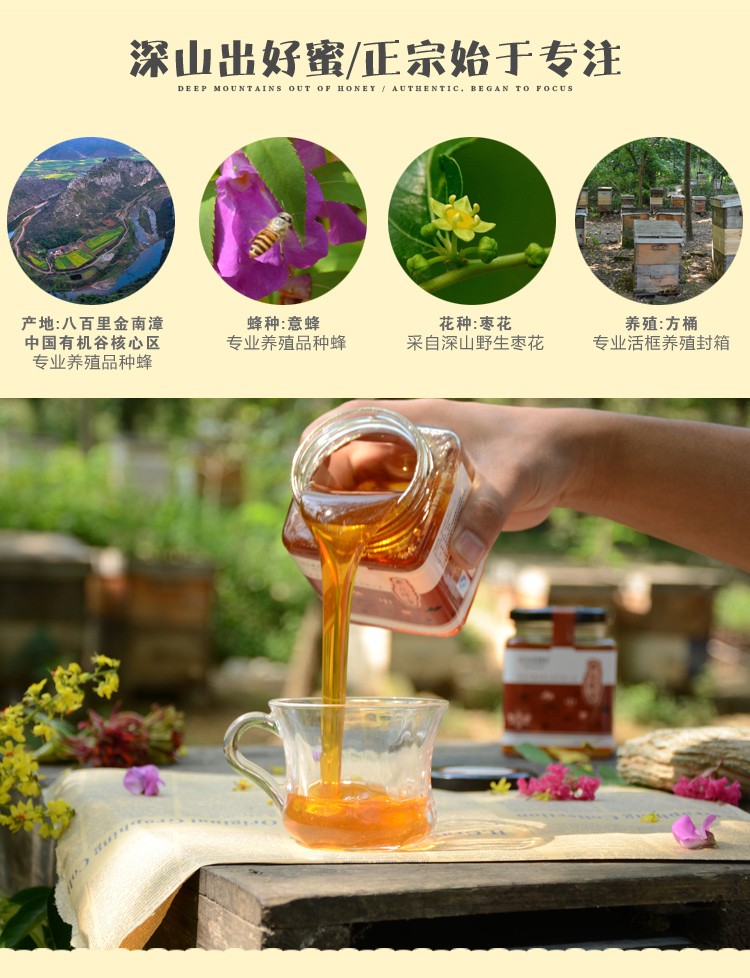 (巨邦佑)BJ+水镜蜂情枣花蜂蜜500g 质地粘稠甜香可口
