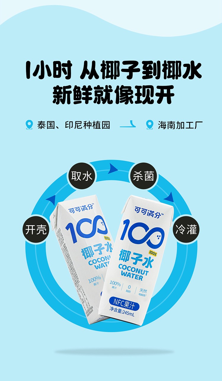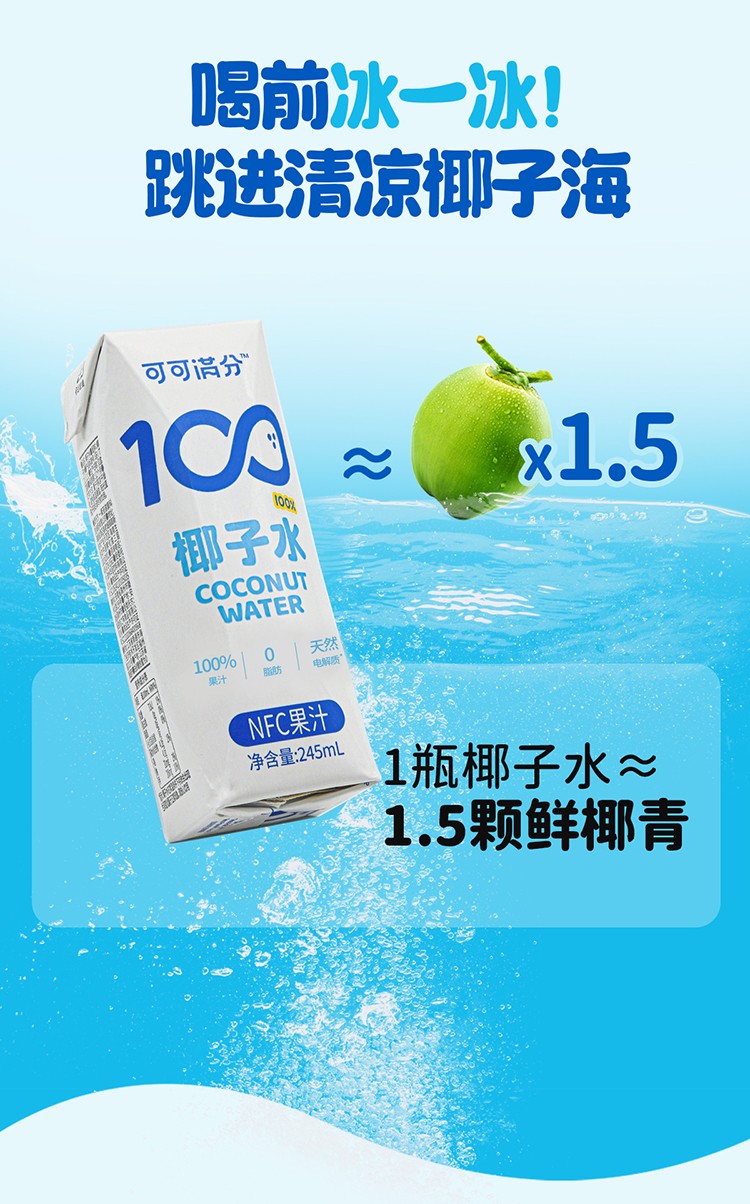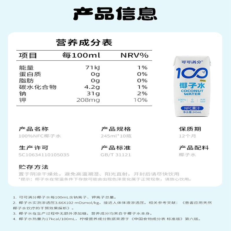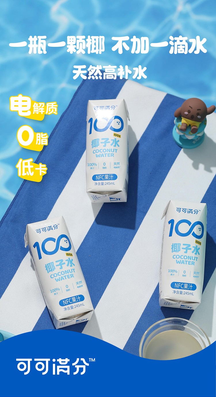商品名称:(世星阳光)可可满分 椰子水245ml*10瓶 100%椰子水 新鲜现榨NFC青椰汁 0脂饮料 天然电解质补水 网红饮品 【分享装】