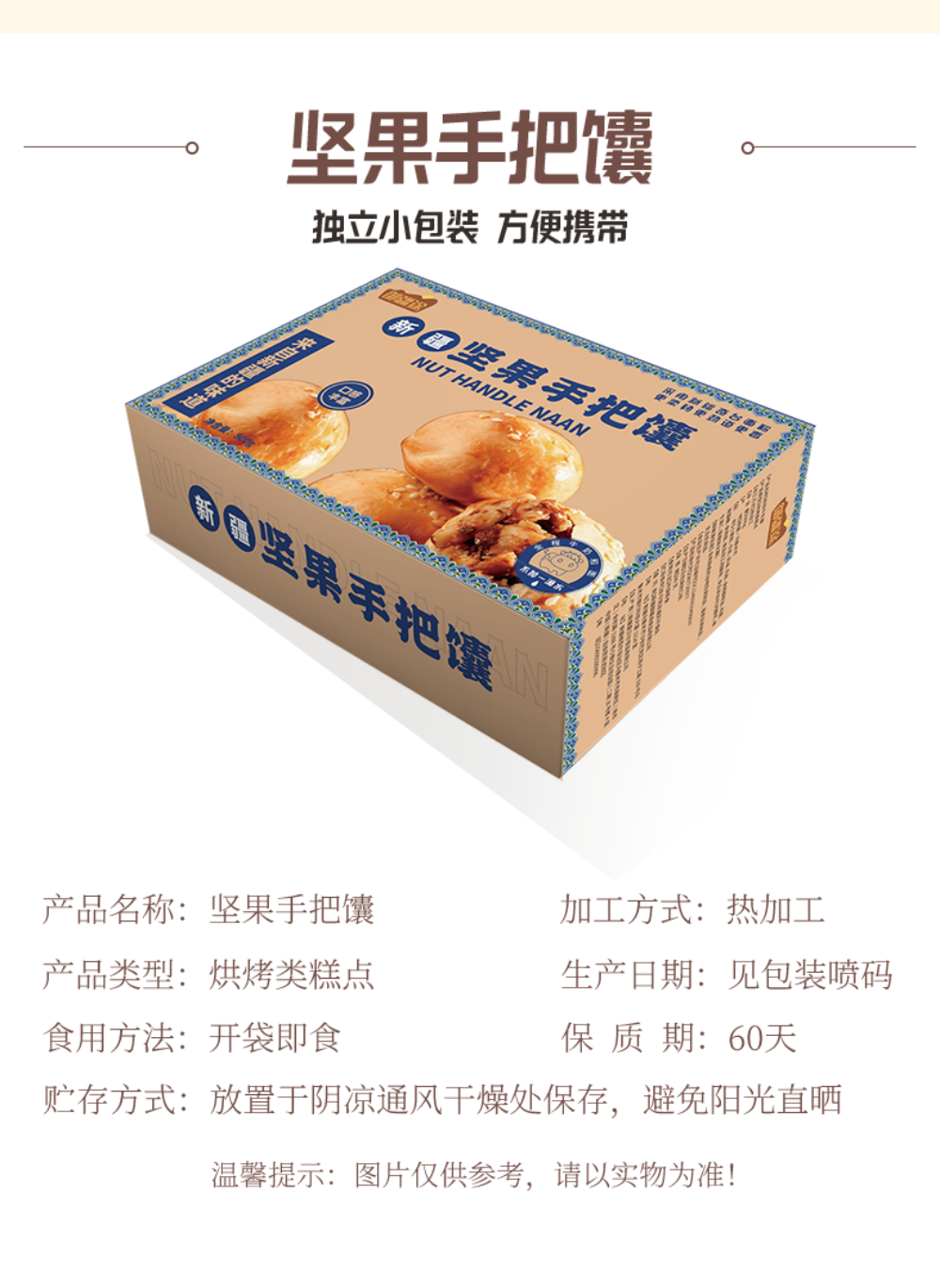 商品名称:(世星阳光) 御疆途 新疆坚果手把馕 500克盒 营养早餐糕点送朋友下午茶零食