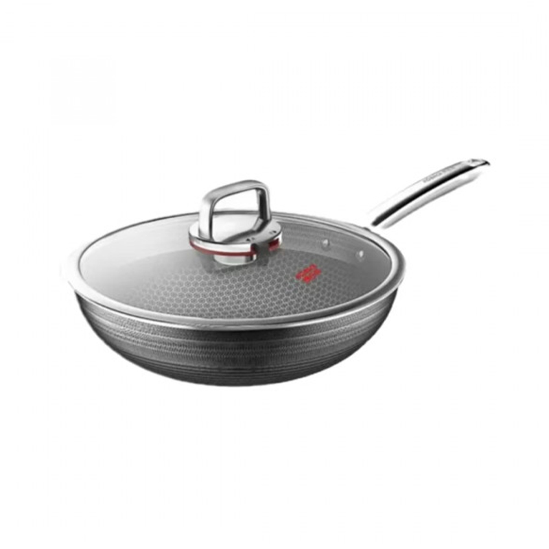 (中百)康巴赫“双蜂窝”第六代蜂窝炒锅32cm 家用不锈钢炒锅电磁炉燃气灶专用锅