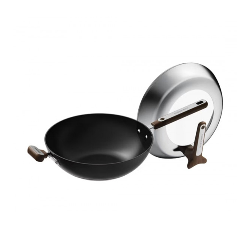 (中百)康巴赫聚能铸铁真不锈炒锅-套装32cm