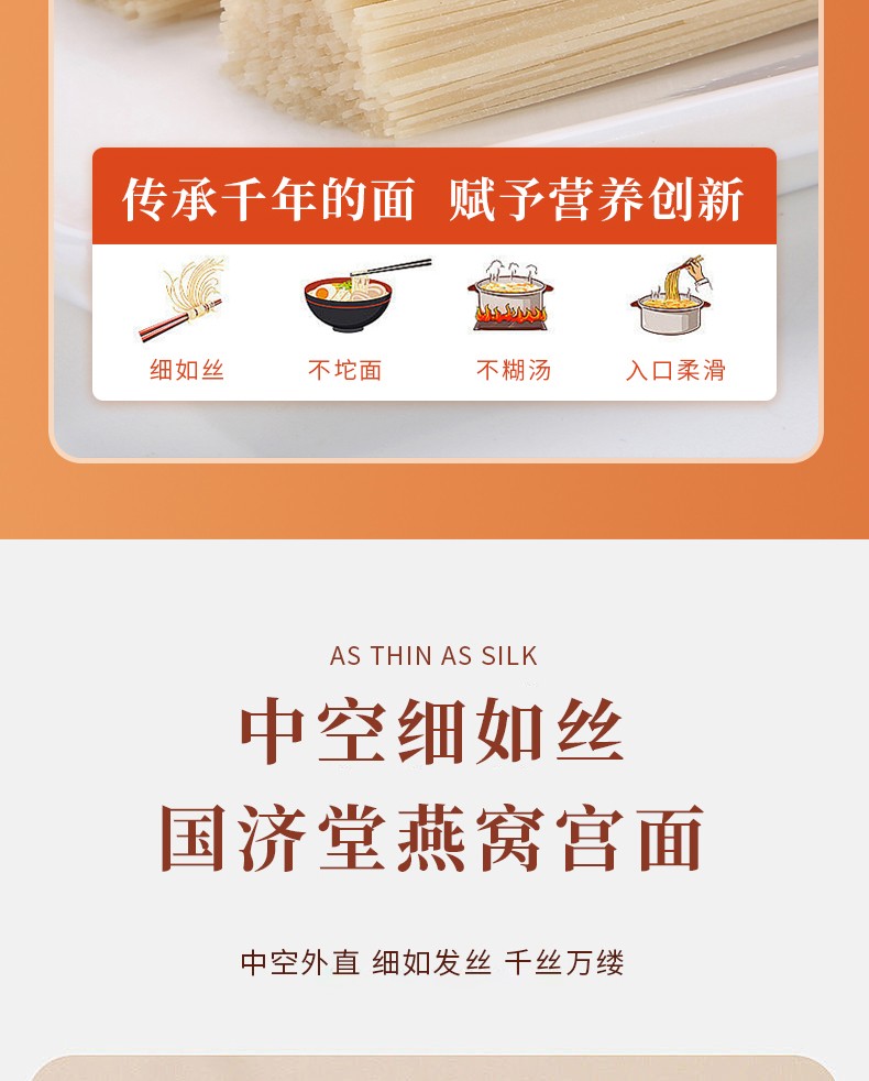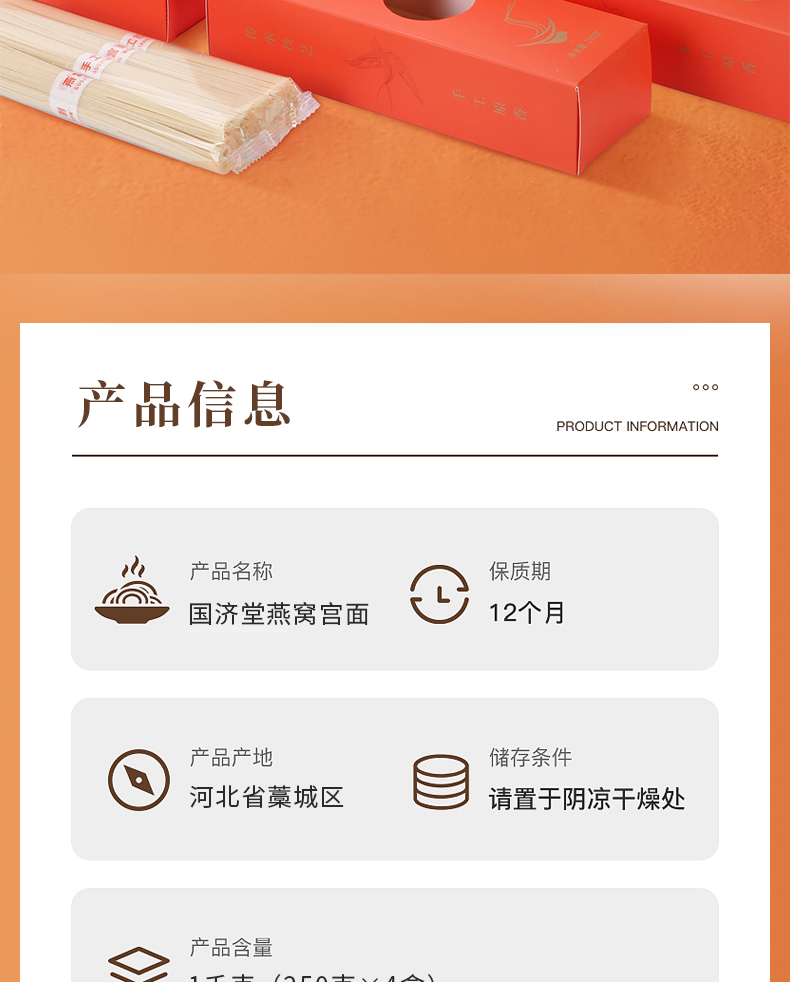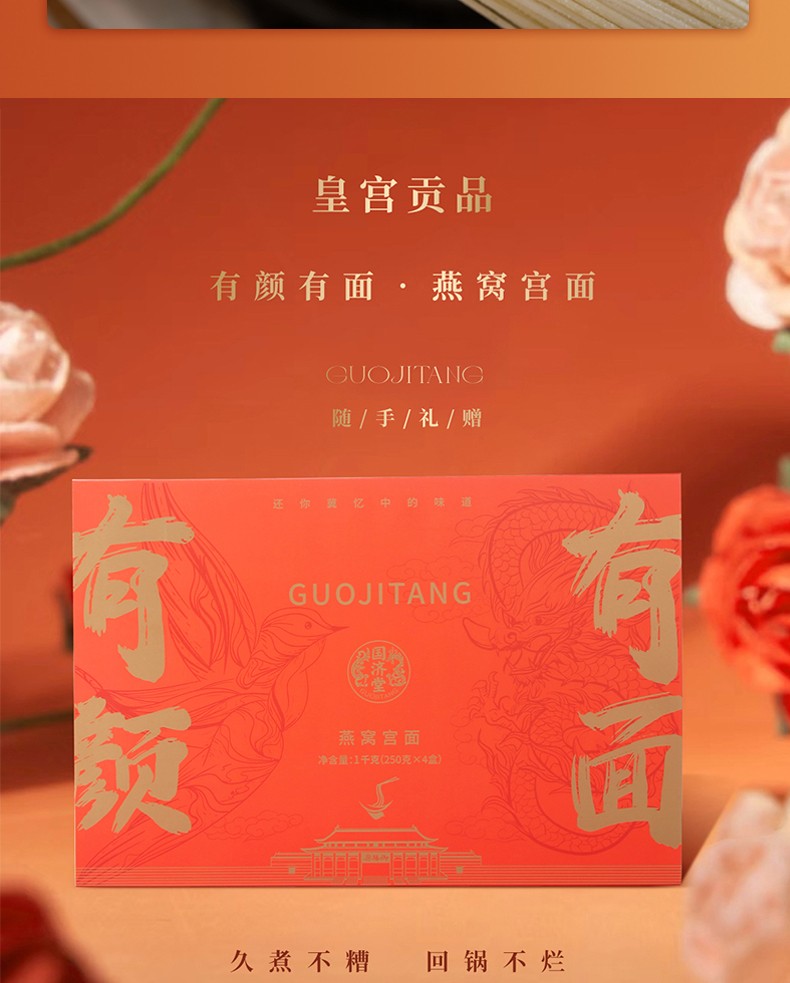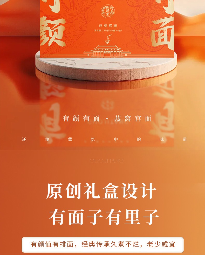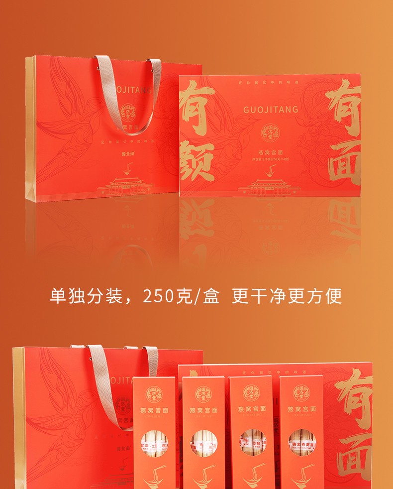 (世星阳光) 国济堂.有颜有面·燕窝宫面礼盒 250克盒×4盒 河北特产伴手礼老人儿童早餐挂面 月子餐孕妇送老人送朋友手工面