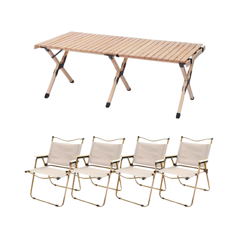(巨邦佑)BH+飞图乐(FTLY)原木折叠桌椅套装大号:ZDZY0902 原木蛋卷桌套装桌椅五件套