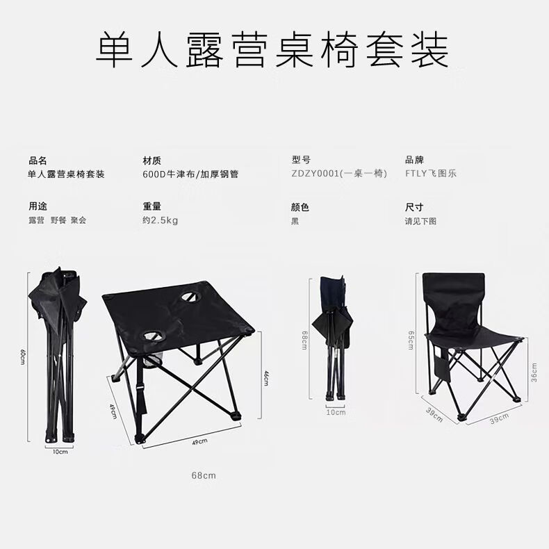 (巨邦佑)BH+飞图乐(FTLY)单人露营桌椅套装ZDZY0001单人露营桌椅套装【一桌一椅】