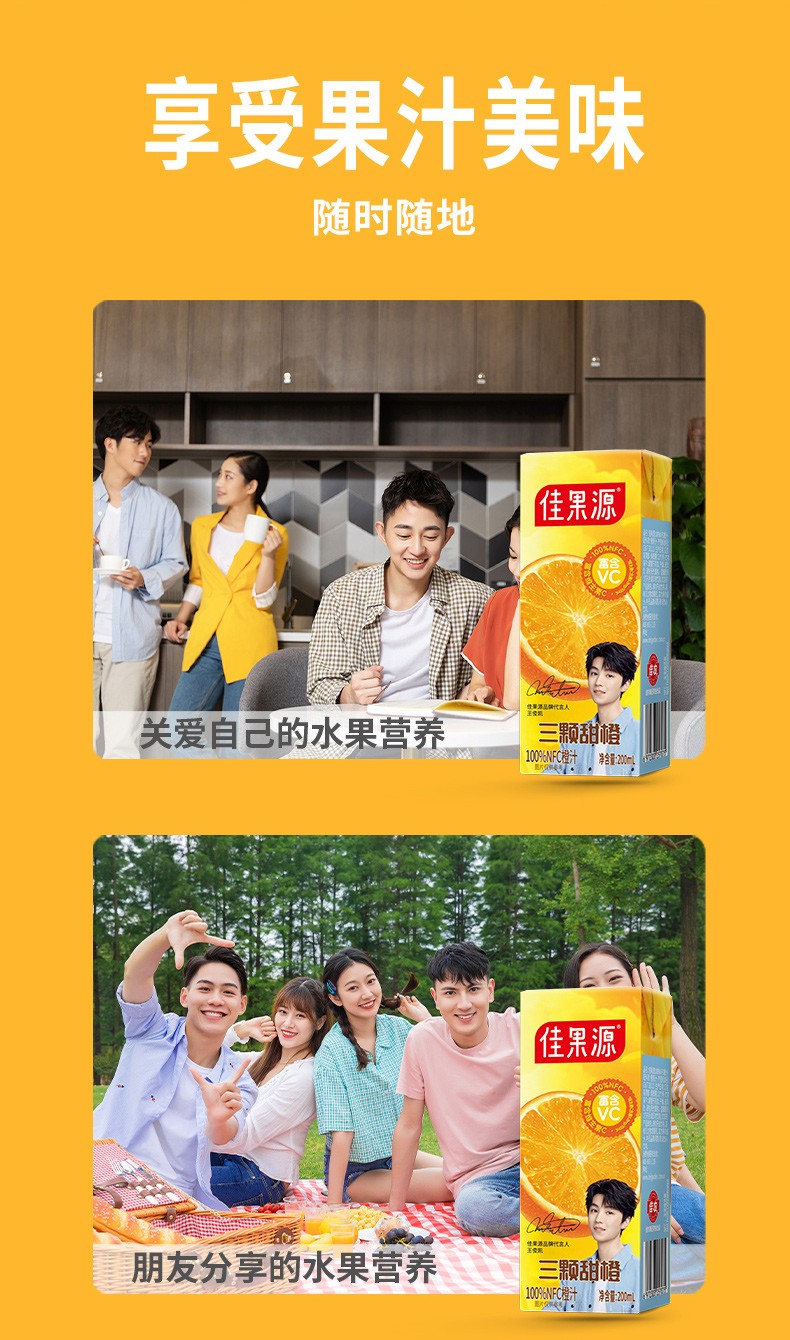 商品名称:(世星阳光)佳果源三颗甜橙100%NFC橙汁200ml*10礼盒装 果蔬汁饮料整箱果汁饮 富含VC 送礼聚会畅饮