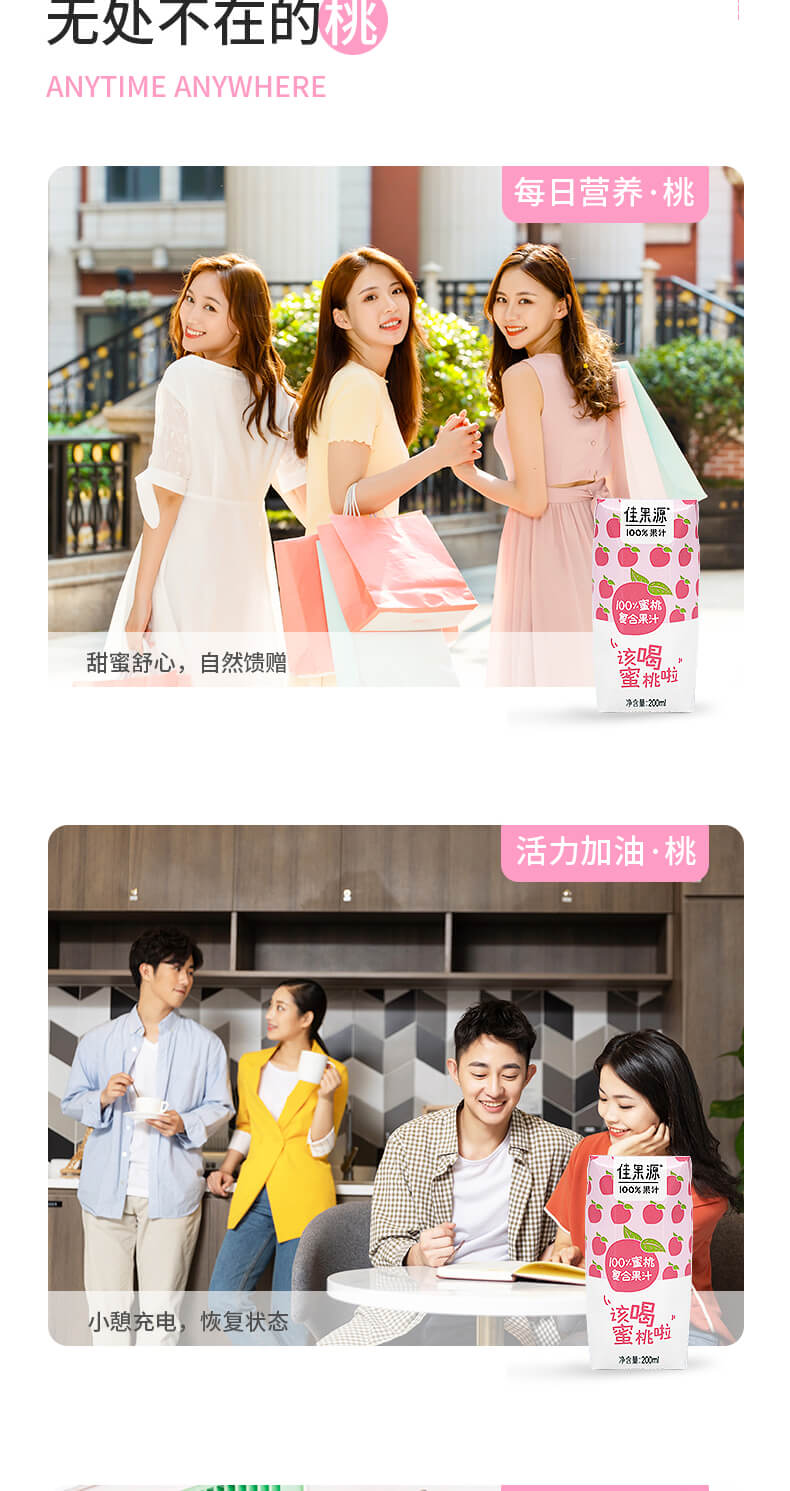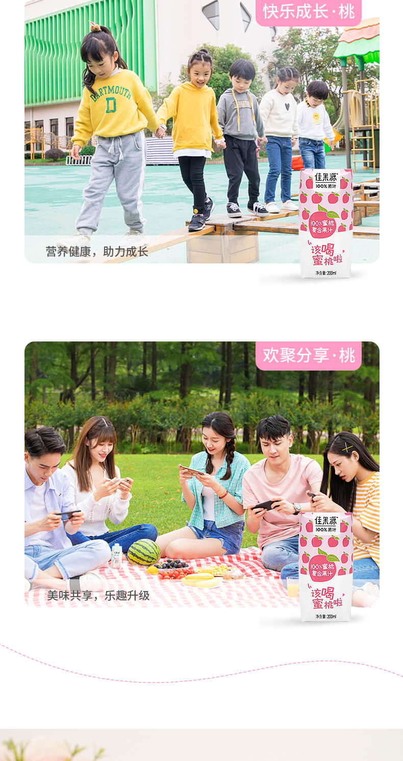 商品名称:(世星阳光)佳果源100%蜜桃复合果汁200ml*24瓶 O脂肪夏季果汁饮品