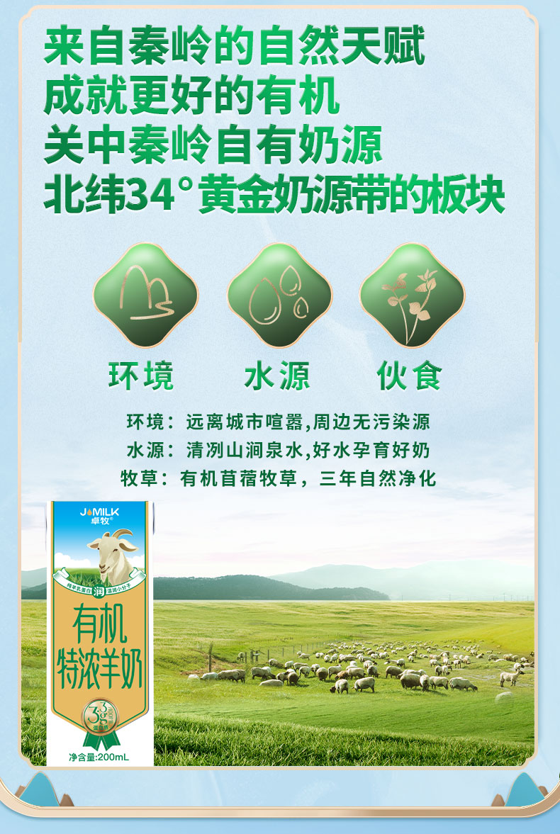 (世星阳光)卓牧有机特浓羊奶200ml*10盒提 特浓营养香浓加倍