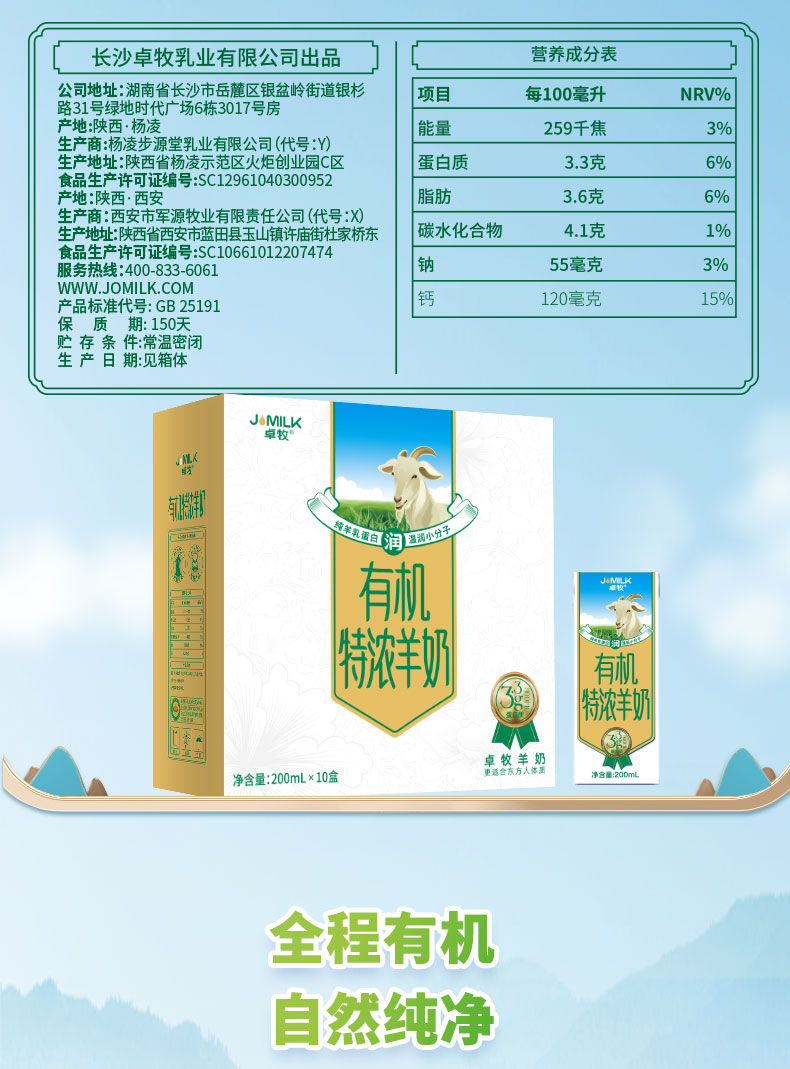 商品名称:(世星阳光)卓牧有机特浓羊奶200ml*10盒提 特浓营养香浓加倍