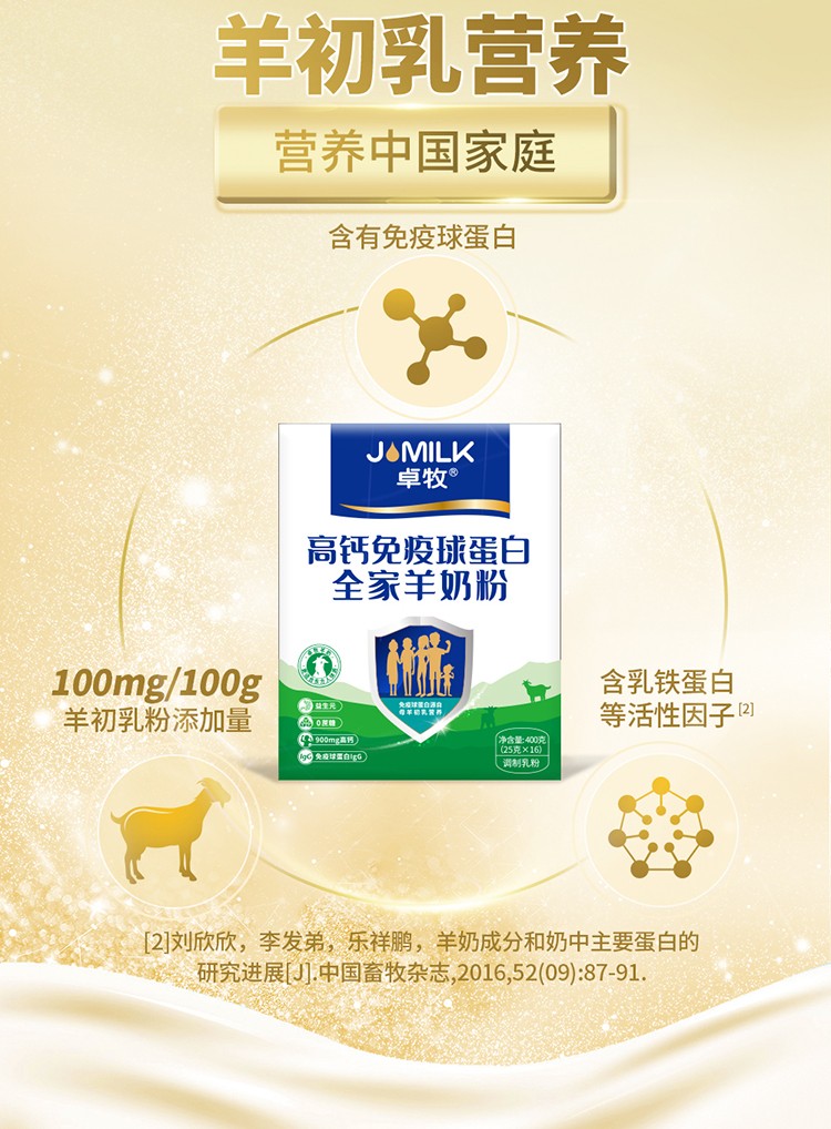 (世星阳光)卓牧免疫球蛋白羊奶粉400g盒 全家羊奶添加羊初乳3岁以上适合