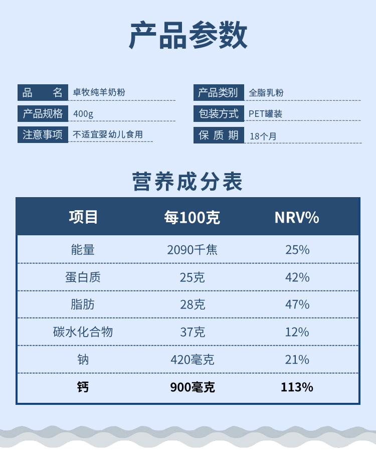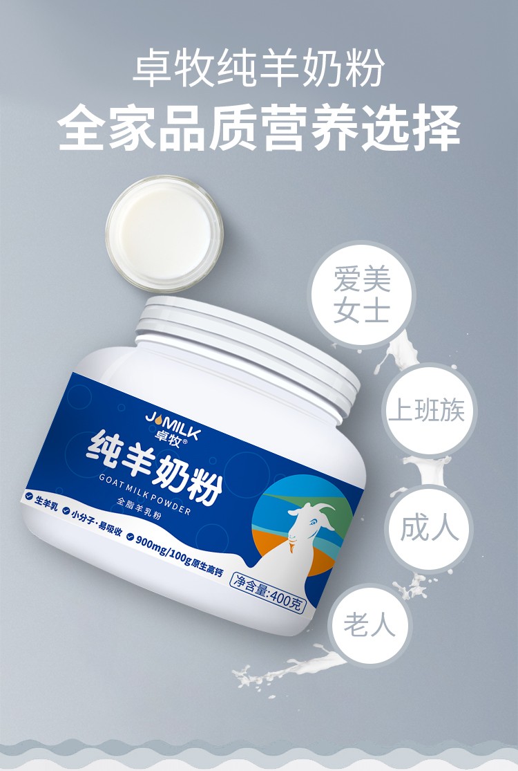 商品名称:(世星阳光) 卓牧纯羊奶粉400g罐 成人无蔗糖奶粉父母全家共享好奶粉