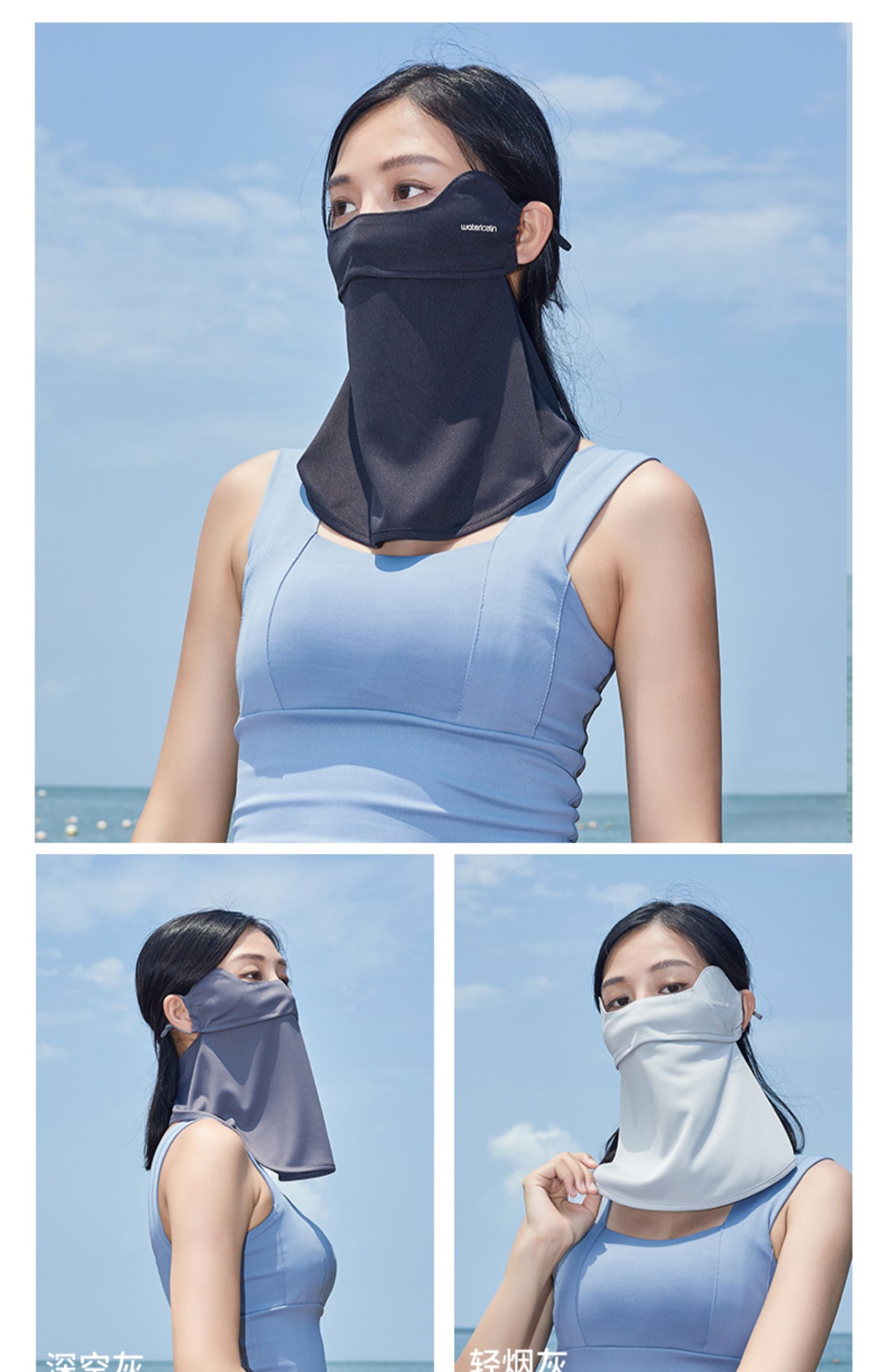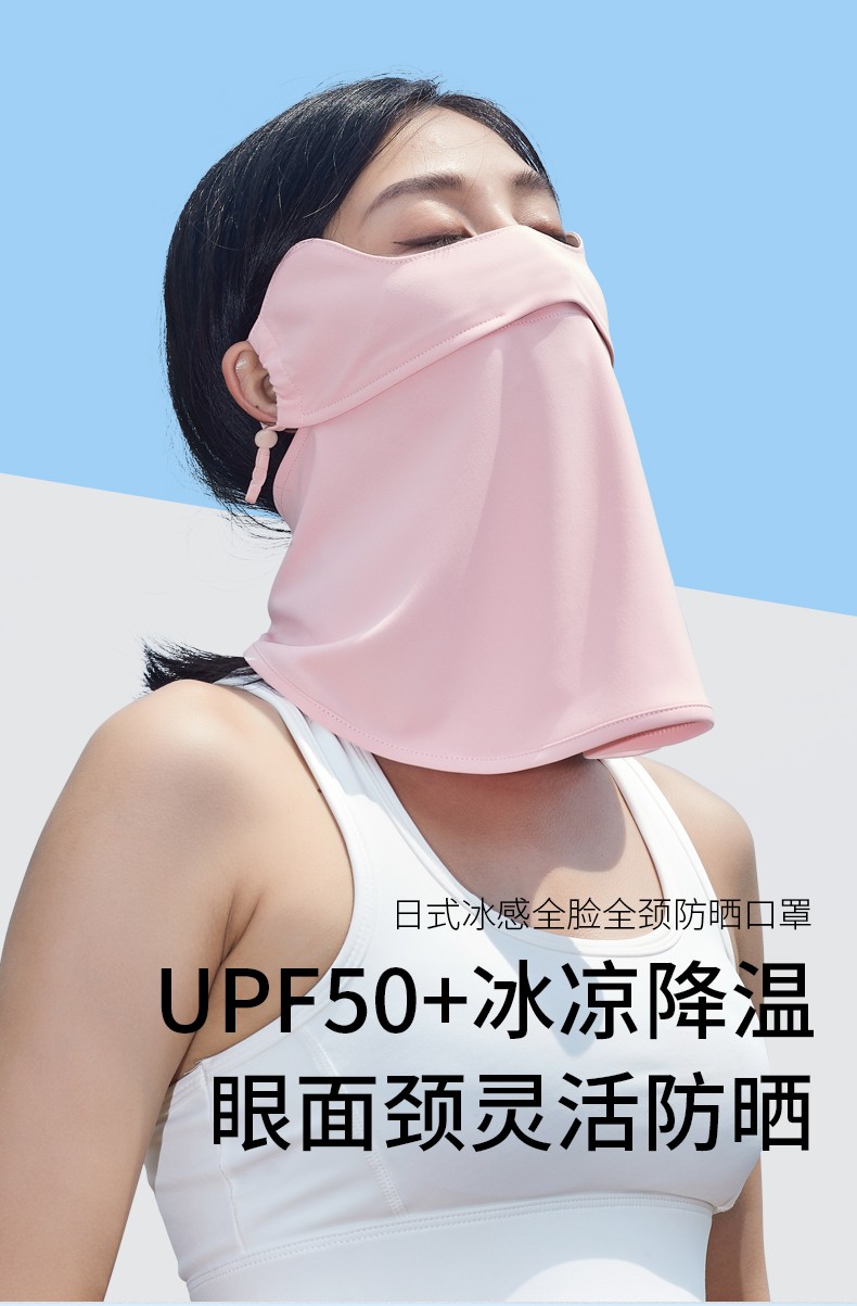 (巨邦佑)BJ+水冰凌日式冰感全脸防晒面罩 多色可选护颈防晒面罩全脸防紫外线透气薄款夏季