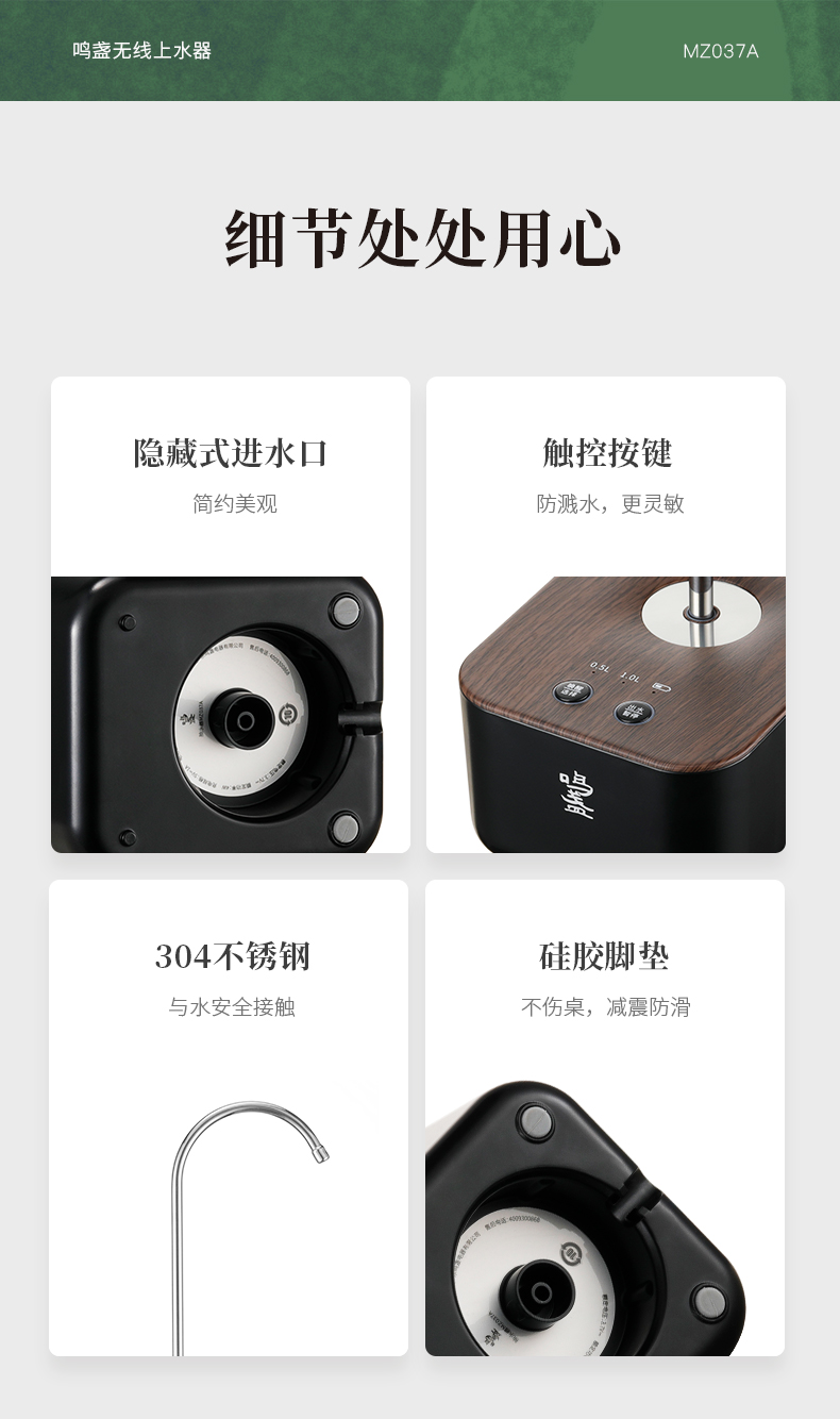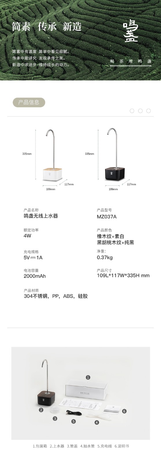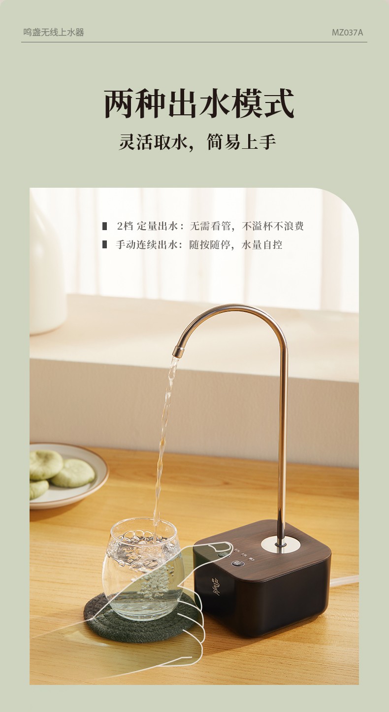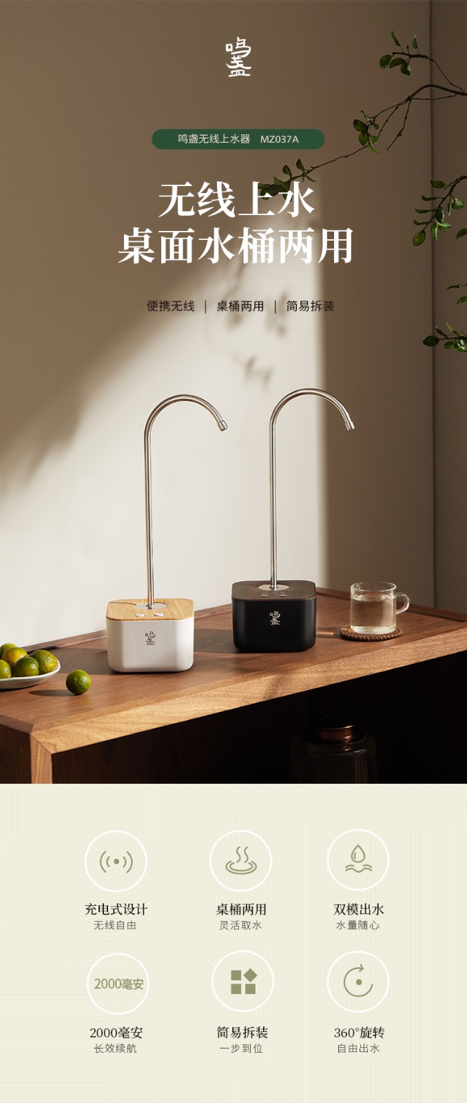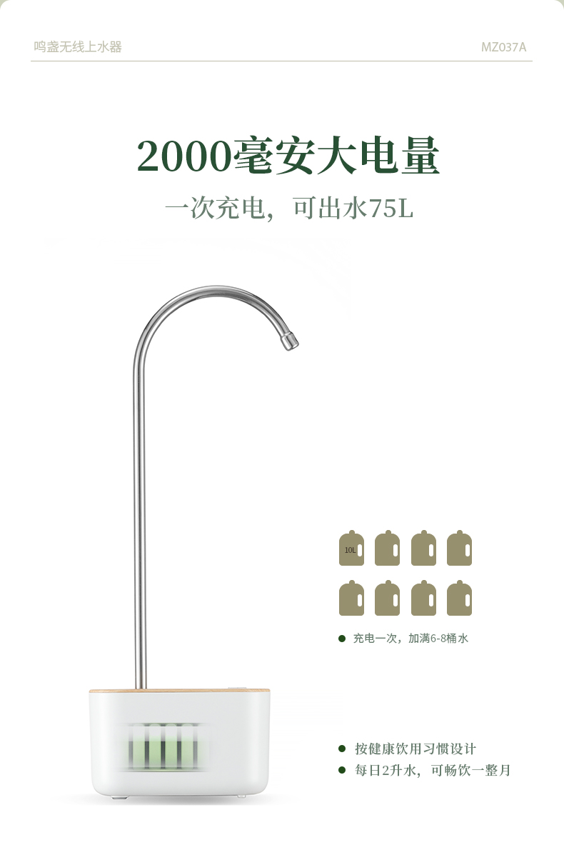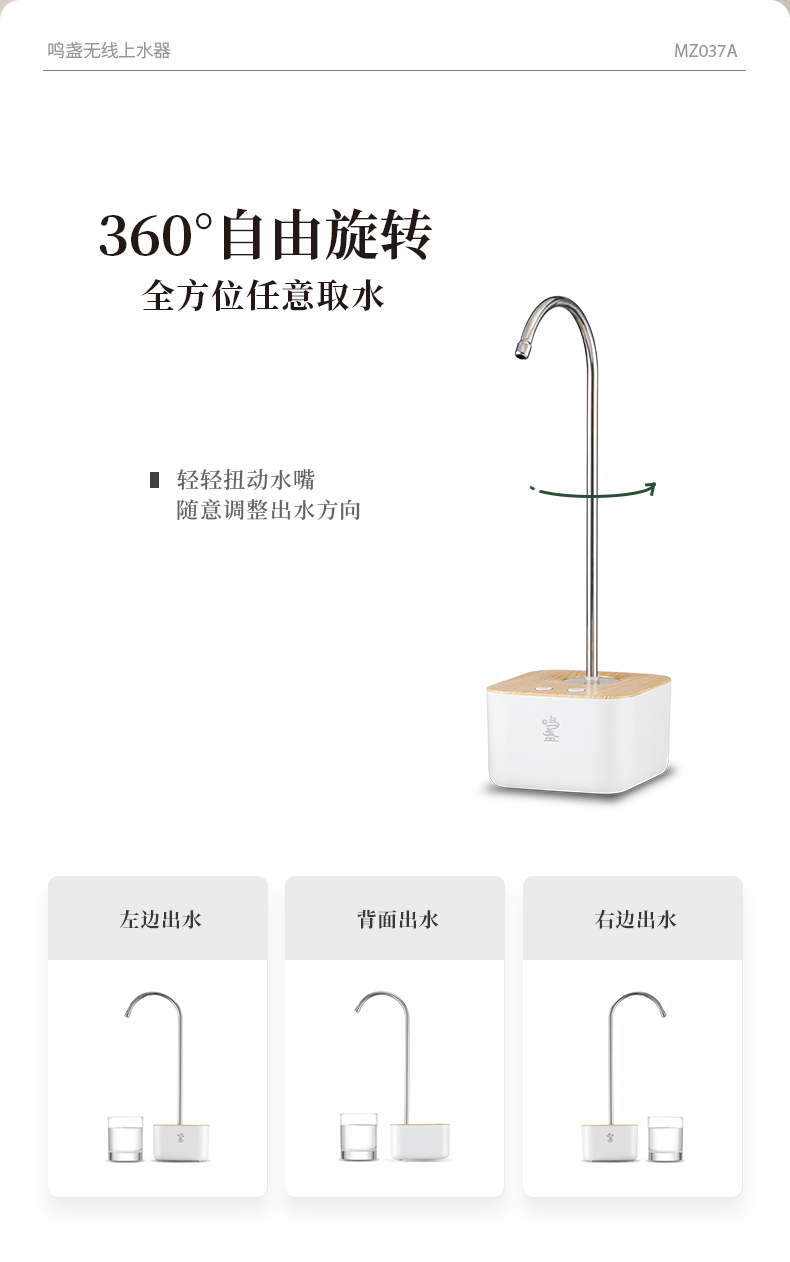 商品名称:(超运·禾贸)鸣盏无线上水器 MZ037A白色 自动上水器可旋转桶桌两用无线充电桶装水抽水器吸水泵压水器