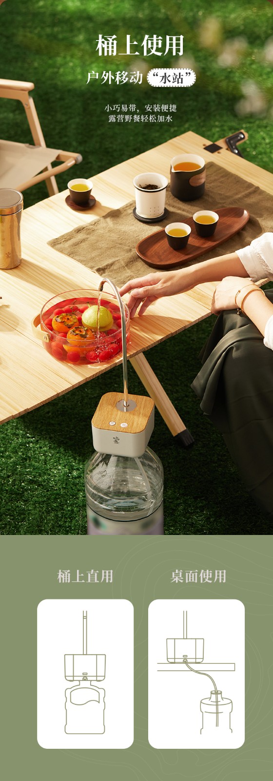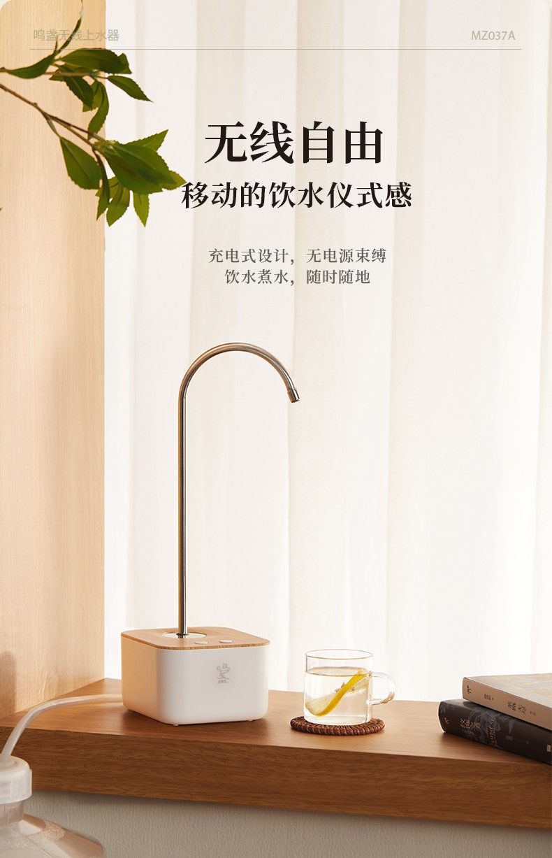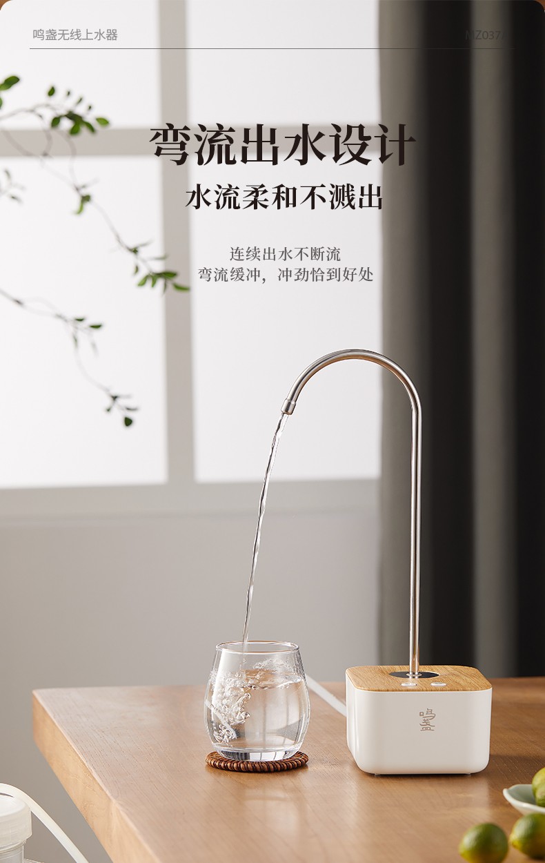 (超运·禾贸)鸣盏无线上水器 MZ037A白色 自动上水器可旋转桶桌两用无线充电桶装水抽水器吸水泵压水器