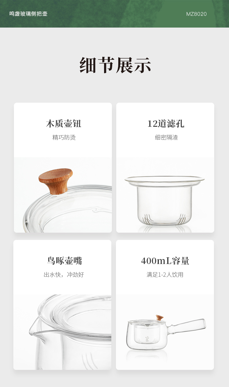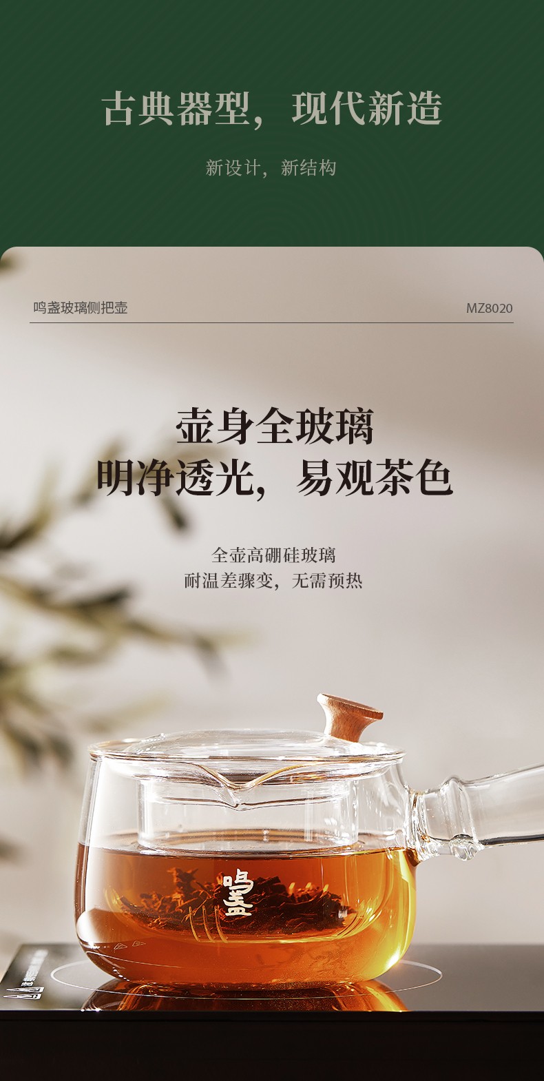 商品名称:(超运·禾贸)鸣盏玻璃侧把壶 MZ8020 烧水煮茶一体机侧把壶
