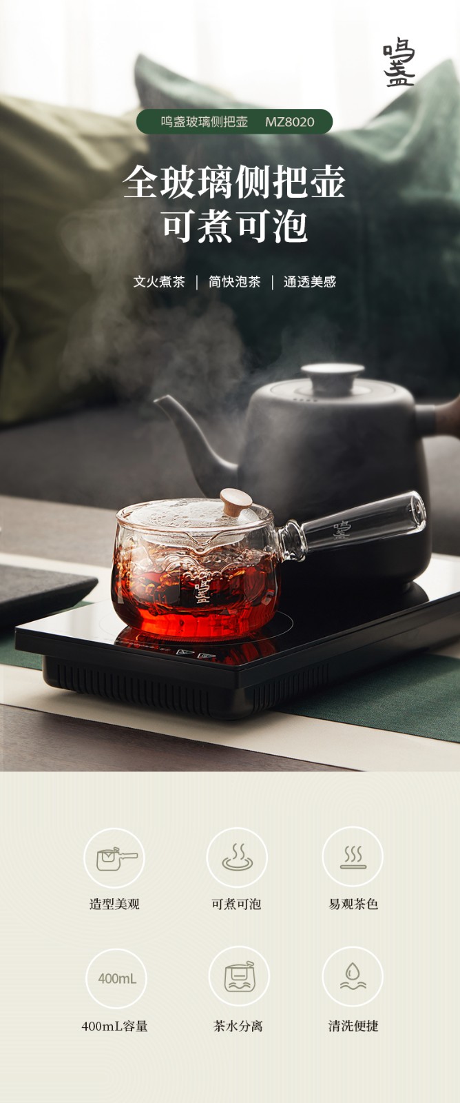 (超运·禾贸)鸣盏玻璃侧把壶 MZ8020 烧水煮茶一体机侧把壶