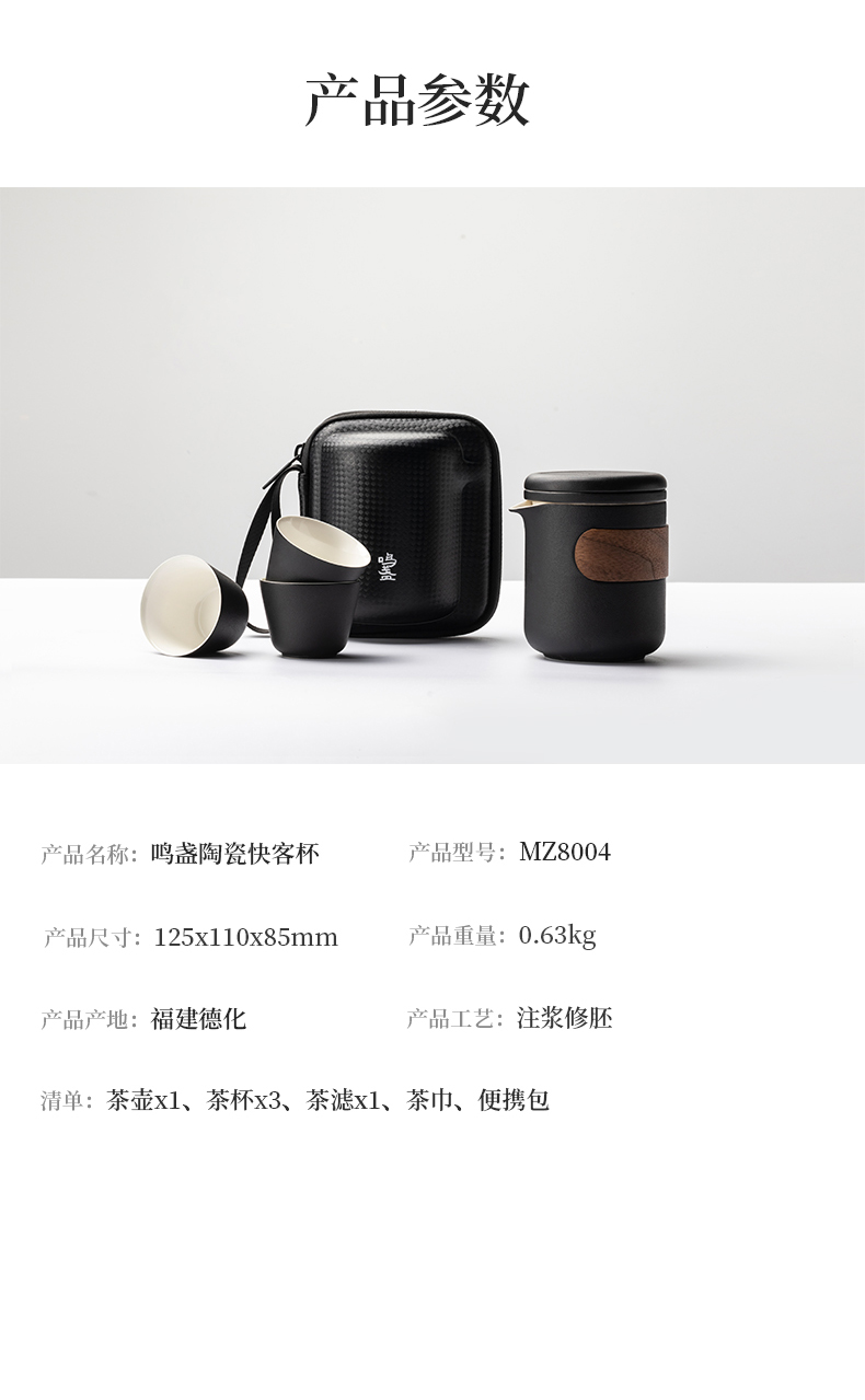 商品名称:(超运·禾贸)鸣盏陶瓷快客杯MZ8004 旅行茶具便携功夫茶具套装快客杯茶壶陶瓷茶杯功夫茶杯户外 一壶3杯