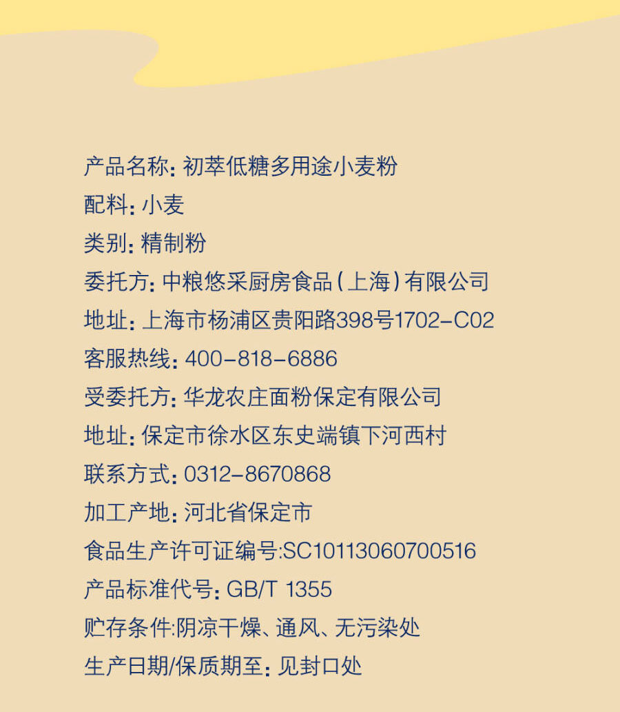 商品名称:(中合誉品)初萃低糖多用途小麦粉5kg 馒头包子饺子面条通用