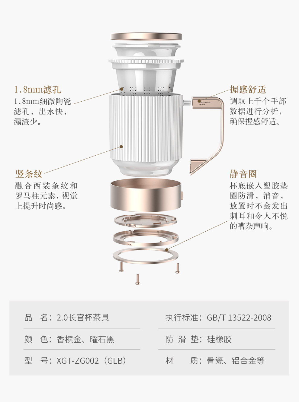 商品名称:(超运·禾贸)小罐茶 长官杯茶具香槟金 高密骨瓷 具高温耐冷耐热茶杯2.0