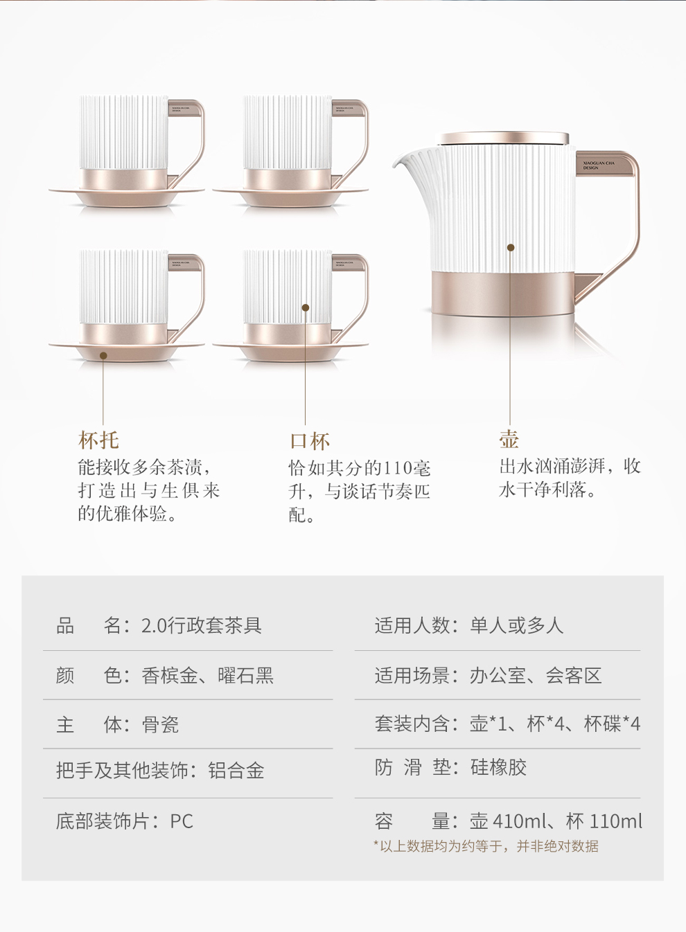 商品名称:(超运·禾贸)小罐茶 行政套茶具香槟金曜石黑 骨瓷行政套茶壶茶杯茶具礼盒