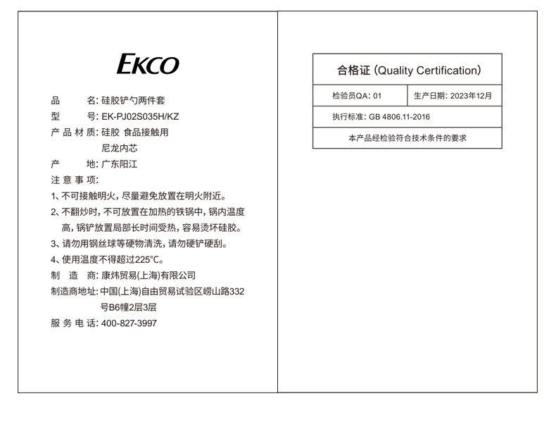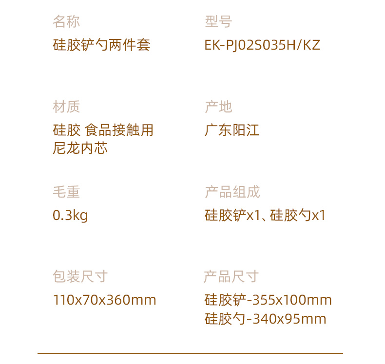 商品名称:(世星阳光)康宁EKCO硅胶铲勺两件套EK-PJ02S035HKZ