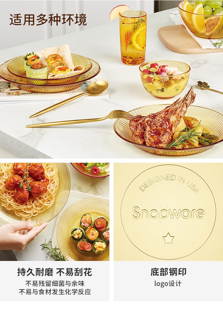 商品名称:(世星阳光)康宁SNAPWARE晶尊系列餐具2件套P(2个深盘)SNAMD2SPKZYL 持久耐磨不易刮花 易清洗