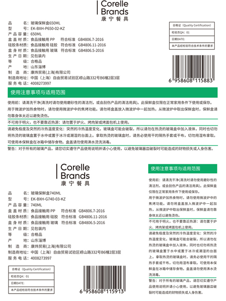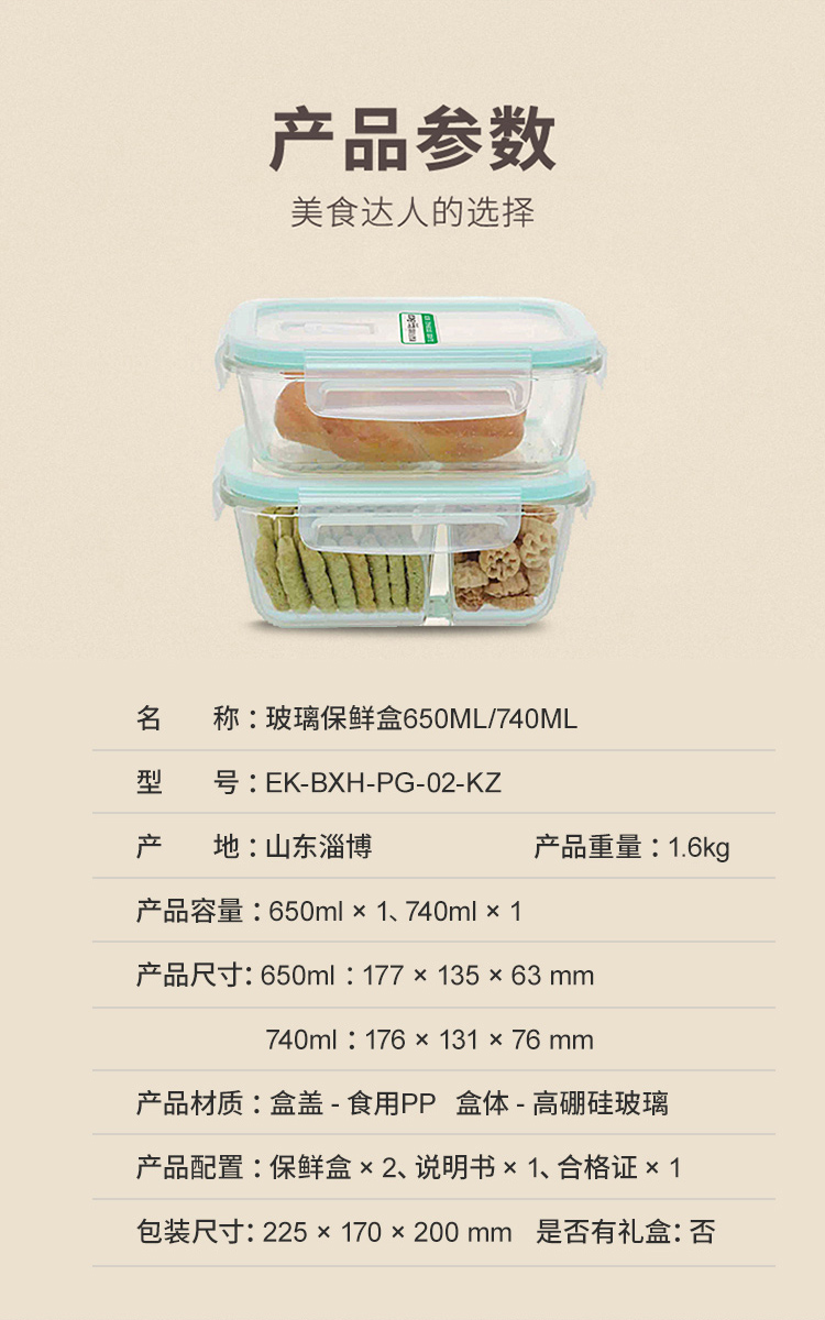 商品名称:(世星阳光)康宁 EKCO玻璃保鲜盒650ML+740MLEK-BXH-PG-02-KZ 易清洗 微波炉可用