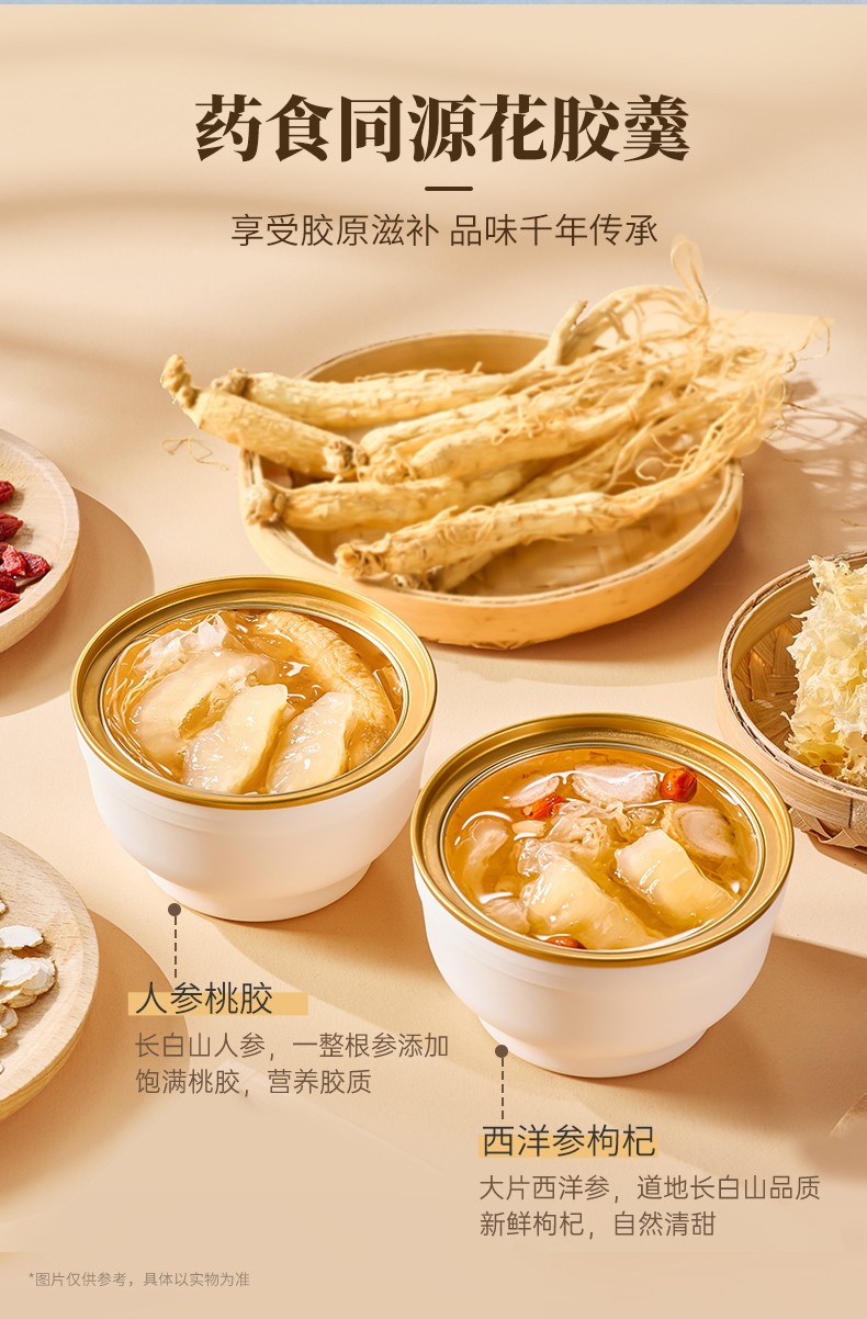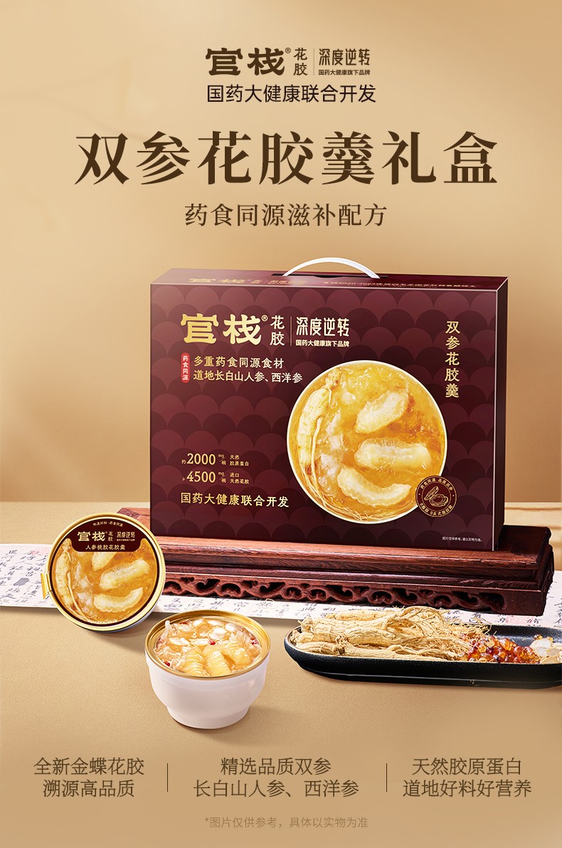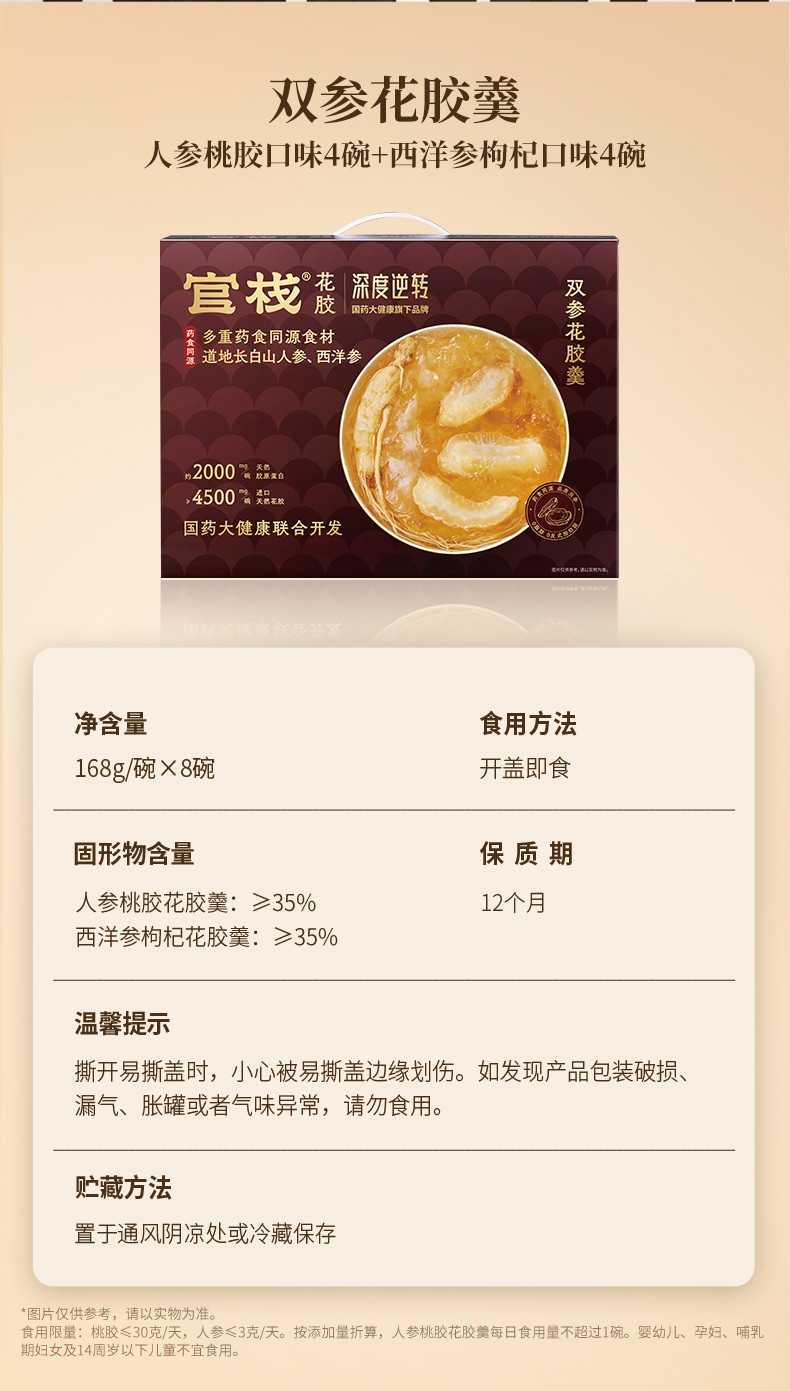 商品名称:(超运·禾贸)官栈×国药深度逆转 双参花胶羹礼盒168g*8礼盒装 补充胶原便携代餐礼盒