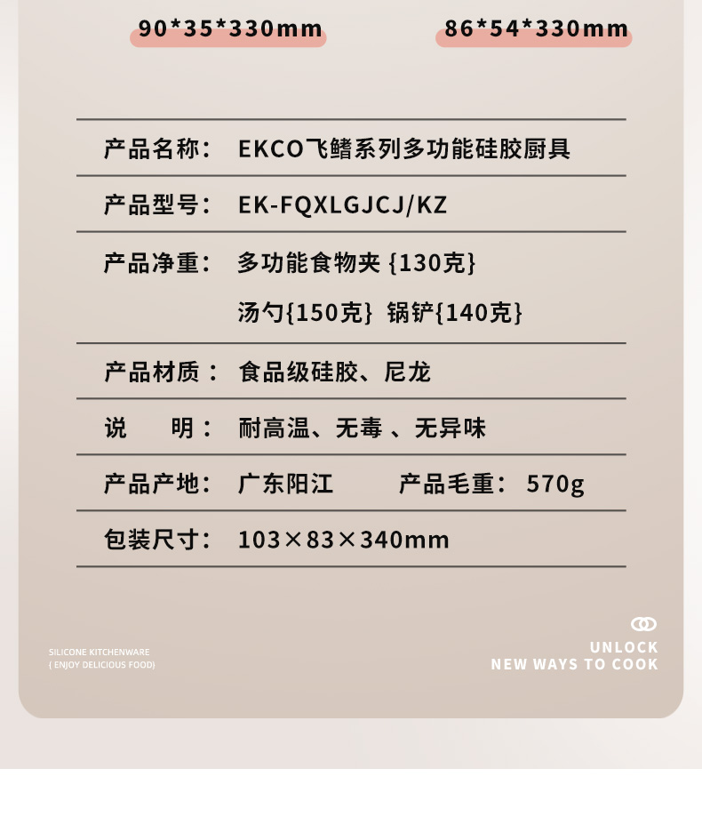 商品名称:(世星阳光)康宁EKCO飞鳍系列多功能硅胶厨具EK-FQXLGJCJKZ 耐高温 不伤锅 不易产生异味