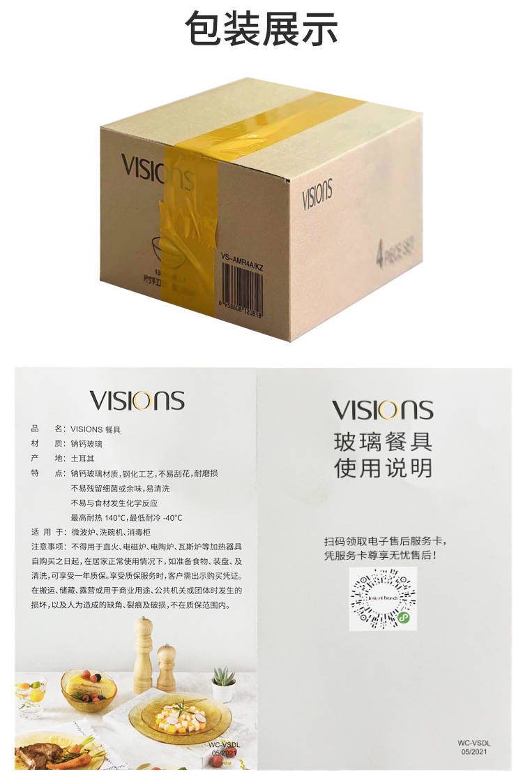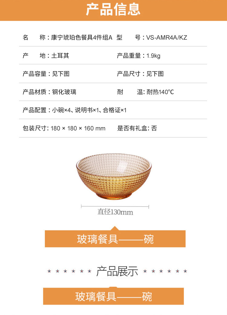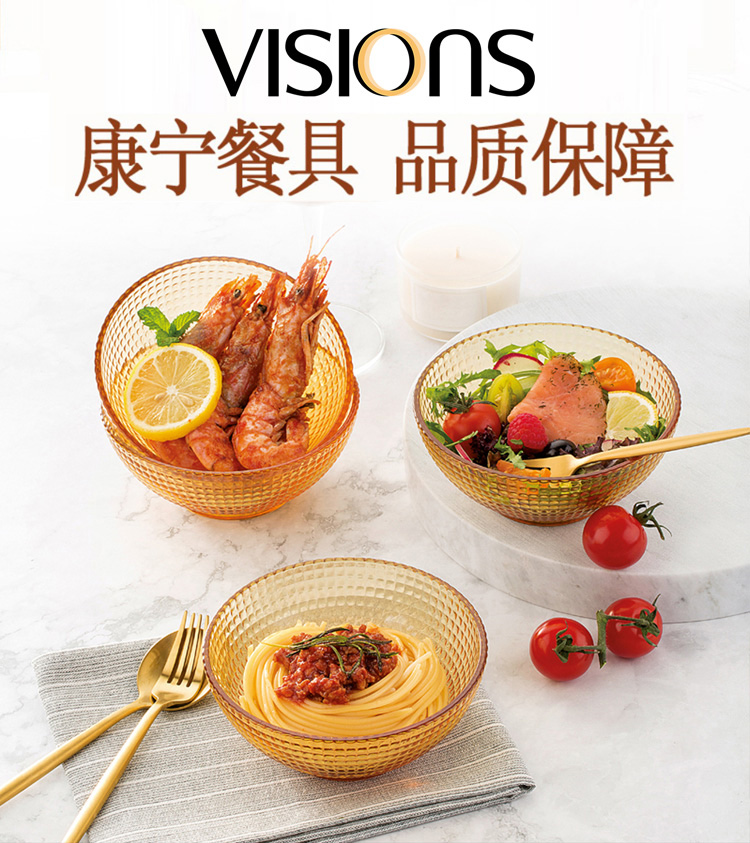 商品名称:(世星阳光)康宁 VISIONS琥珀色餐具晶莹系列4件组A(4个碗)成品VS-AMR4AKZ 耐热(140°)耐冷(-40°)