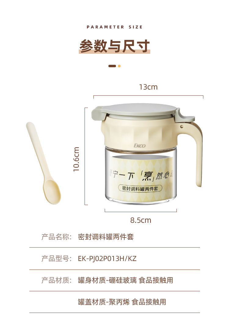 商品名称:(世星阳光)康宁 EKCO密封调料罐两件套EK-PJ02P013HKZ 大口径罐 全身可拆洗 单手轻松开盖