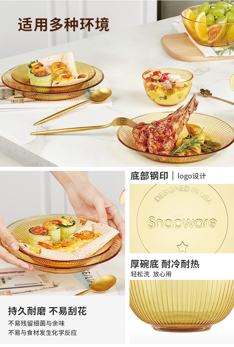 商品名称:(世星阳光) 康宁 SNAPWARE晶尊系列餐具6件套(2个小碗1个大碗2个小盘1个大盘)SNAMD6CKZYL 持久耐磨 厚碗底 耐冷耐热