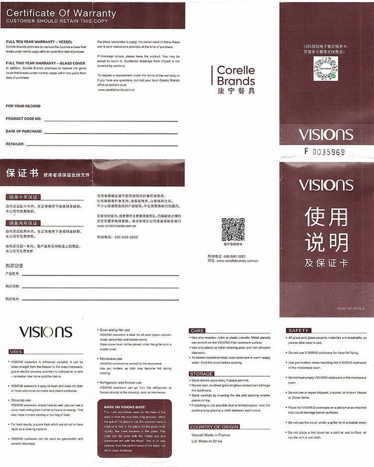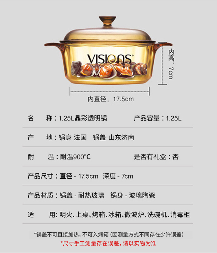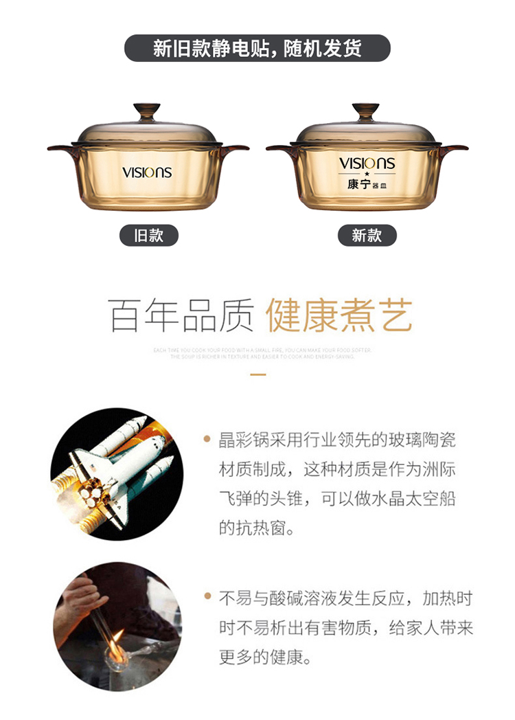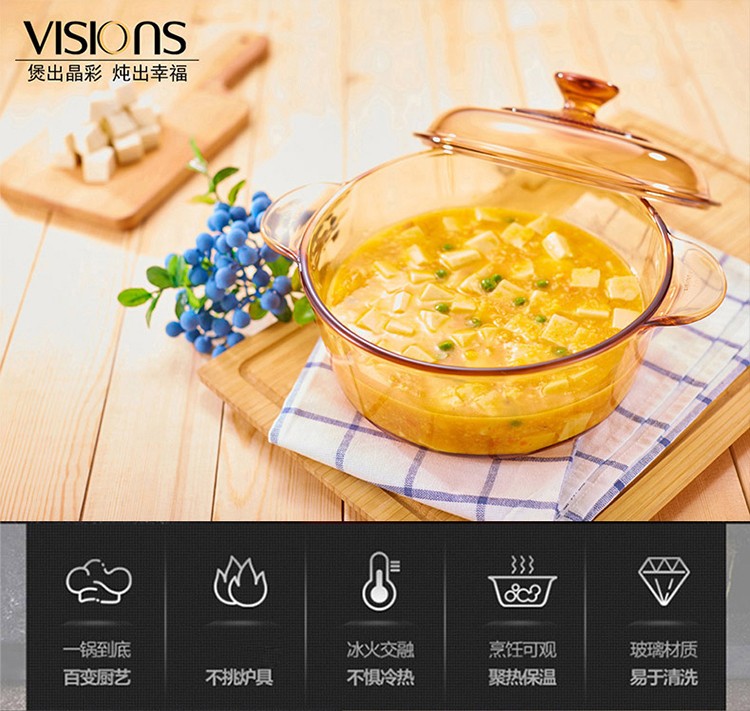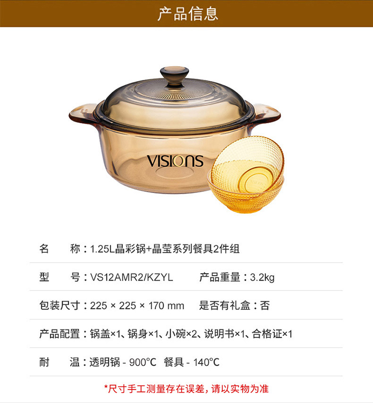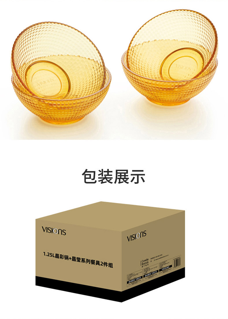 商品名称:(世星阳光)康宁 VISIONS1.25L晶彩锅+晶莹系列餐具2件套(黄盒)VS12AMR2KZYL 不挑炉具 细腻平滑
