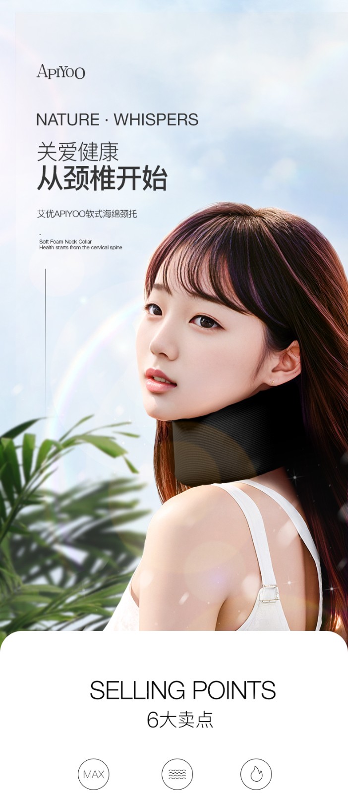 商品名称:(巨邦佑)BJ+Apiyoo艾优软式海绵颈托NC1墨染灰 透气设计亲肤柔软