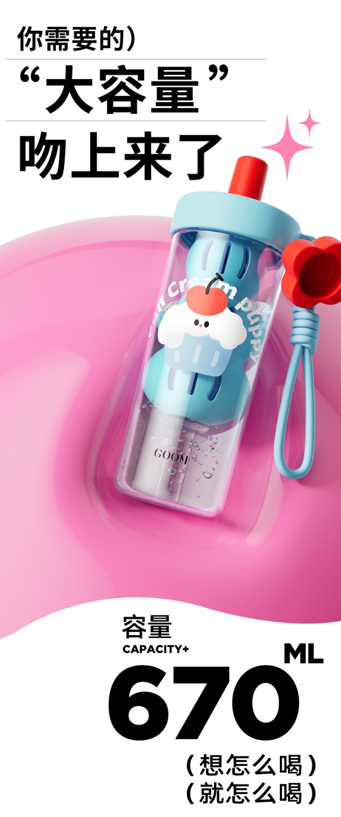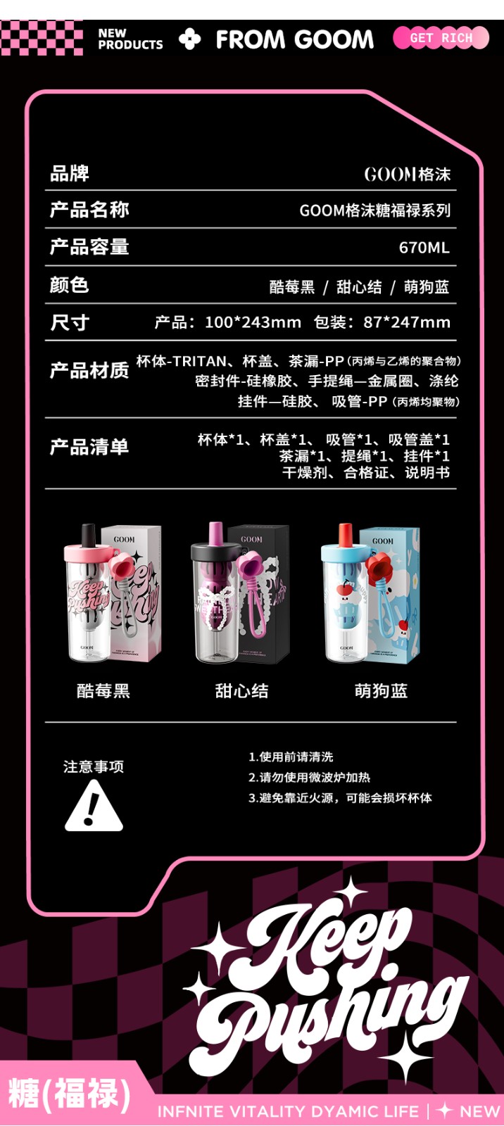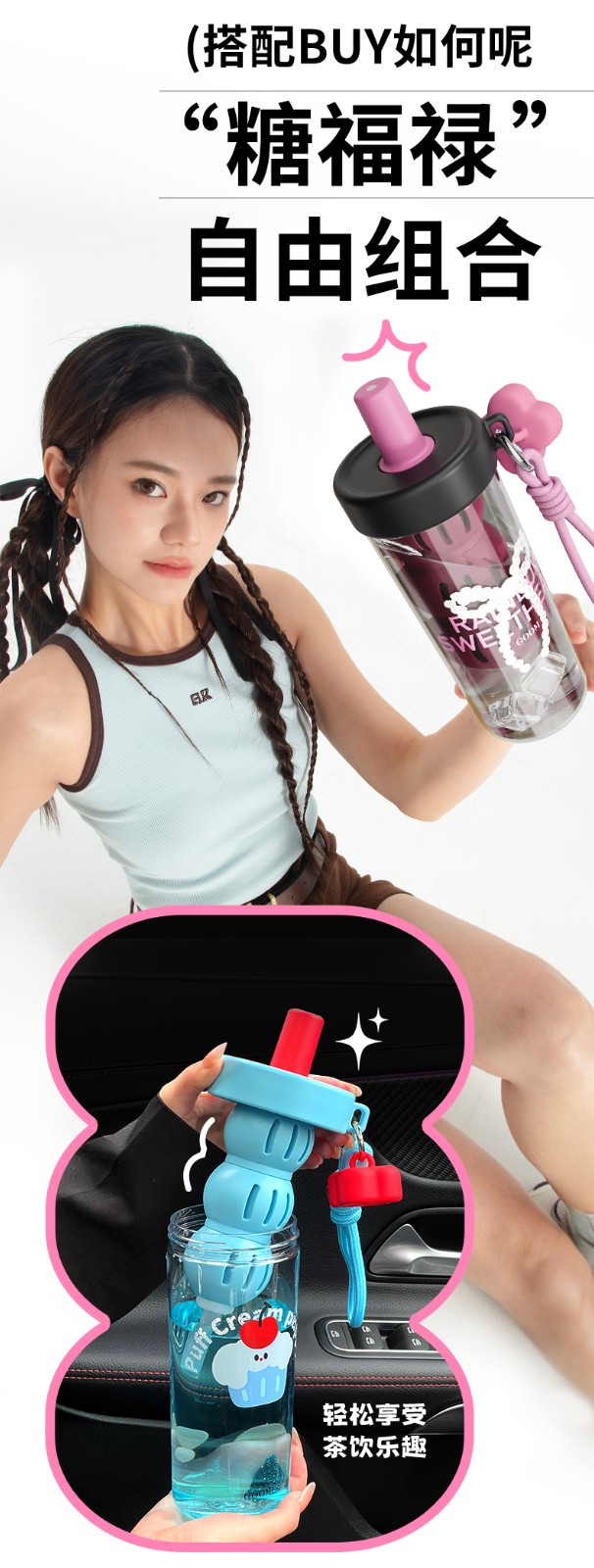 商品名称:(巨邦佑)BJ+GOOM格沫糖福禄水杯670ml 多色可选新款女生高颜值大容量便携塑料水杯子吸管杯泡茶