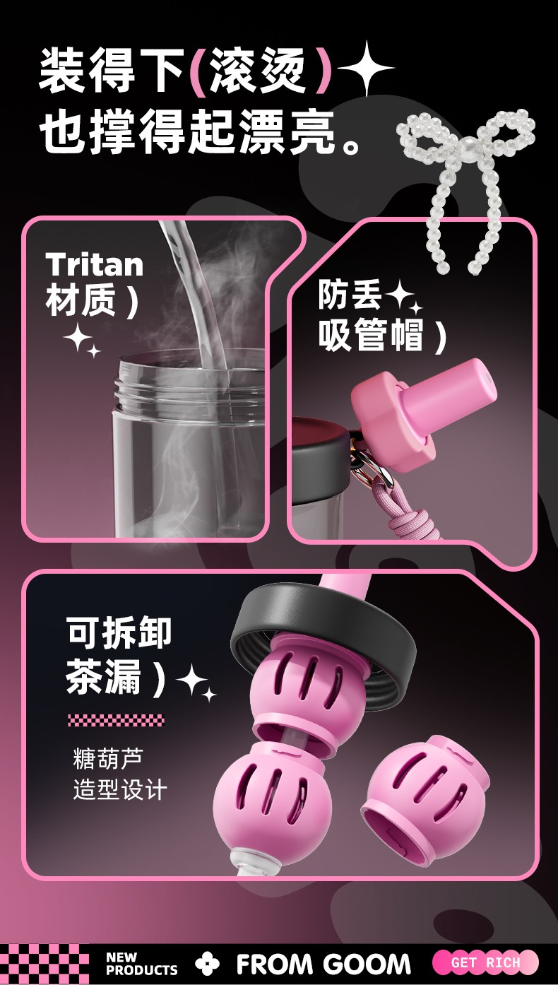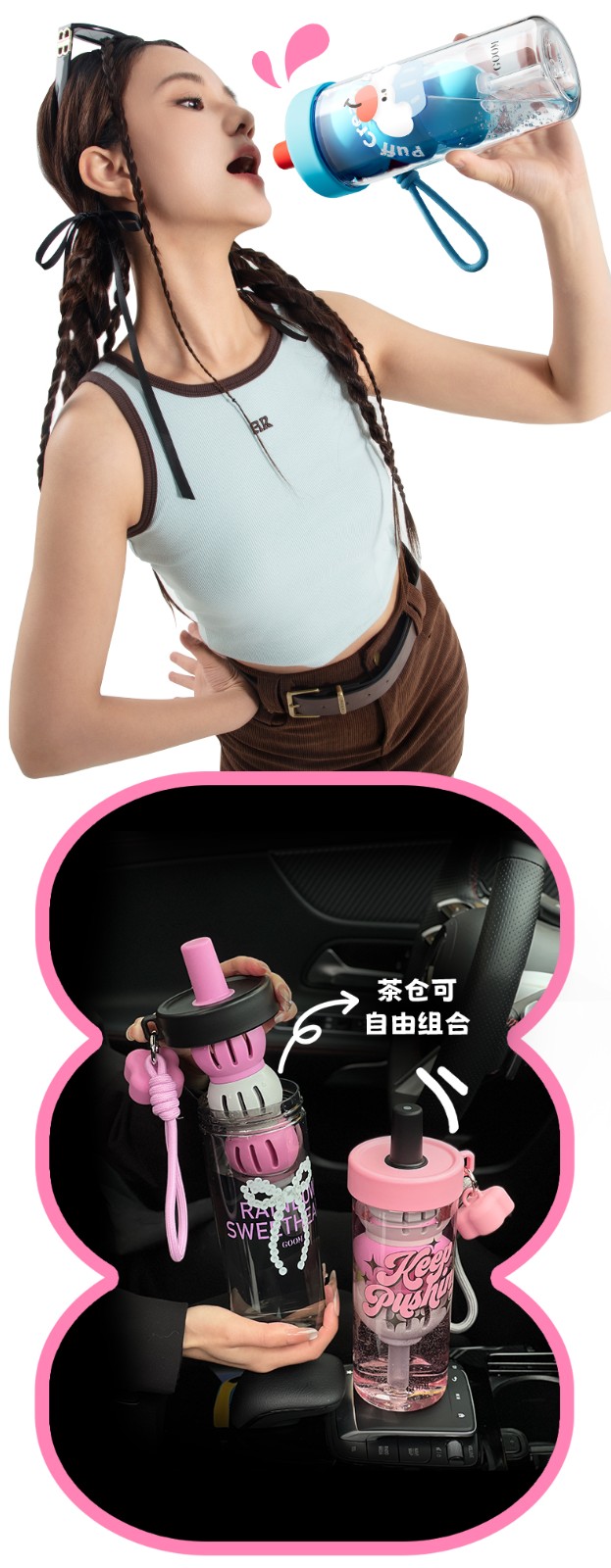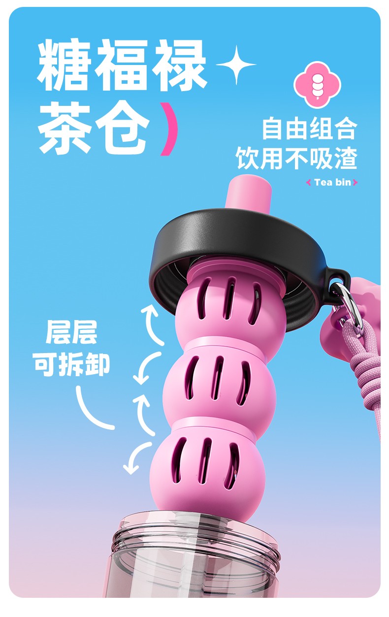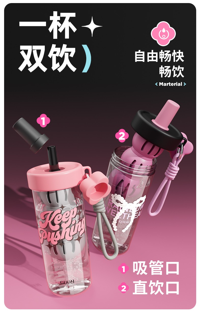 商品名称:(巨邦佑)BJ+GOOM格沫糖福禄水杯670ml 多色可选新款女生高颜值大容量便携塑料水杯子吸管杯泡茶