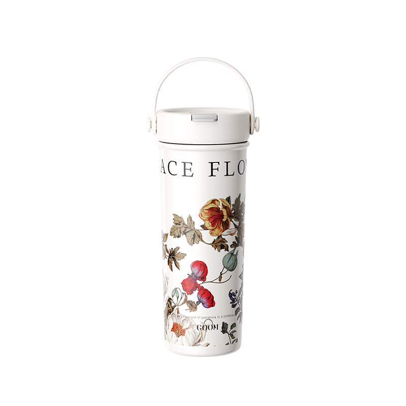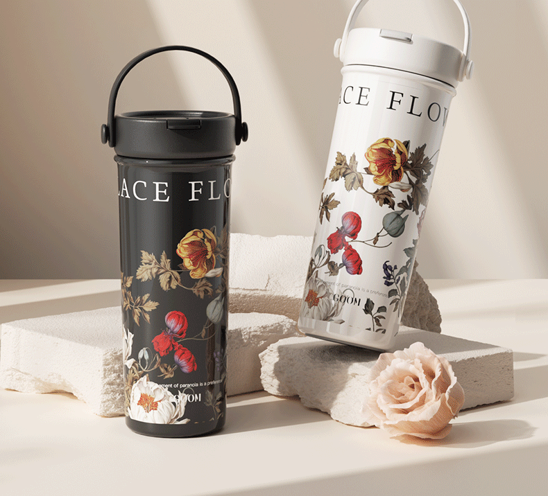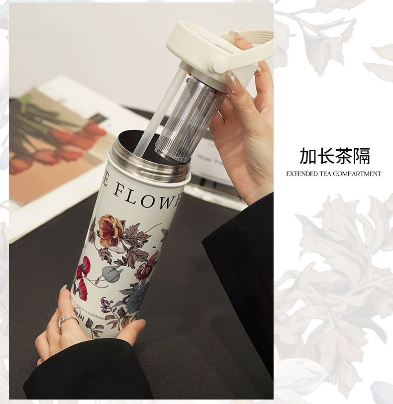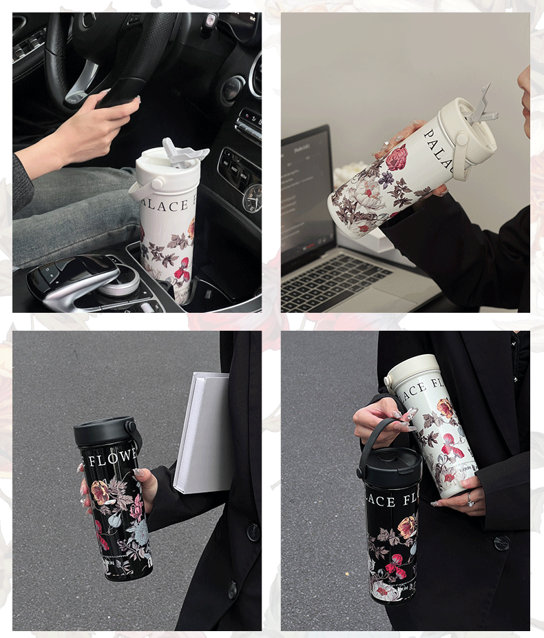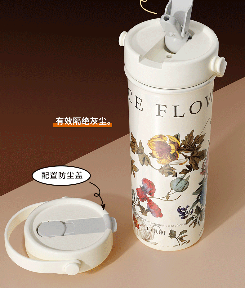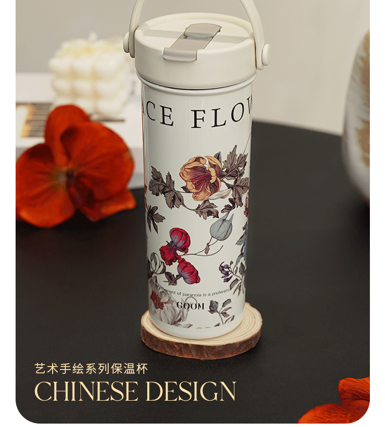 (巨邦佑)BJ+GOOM格沫艺术手绘系列保温杯600ml 繁花/似锦 保温咖啡水杯吸管女生新款大容量高颜值泡茶实用礼物