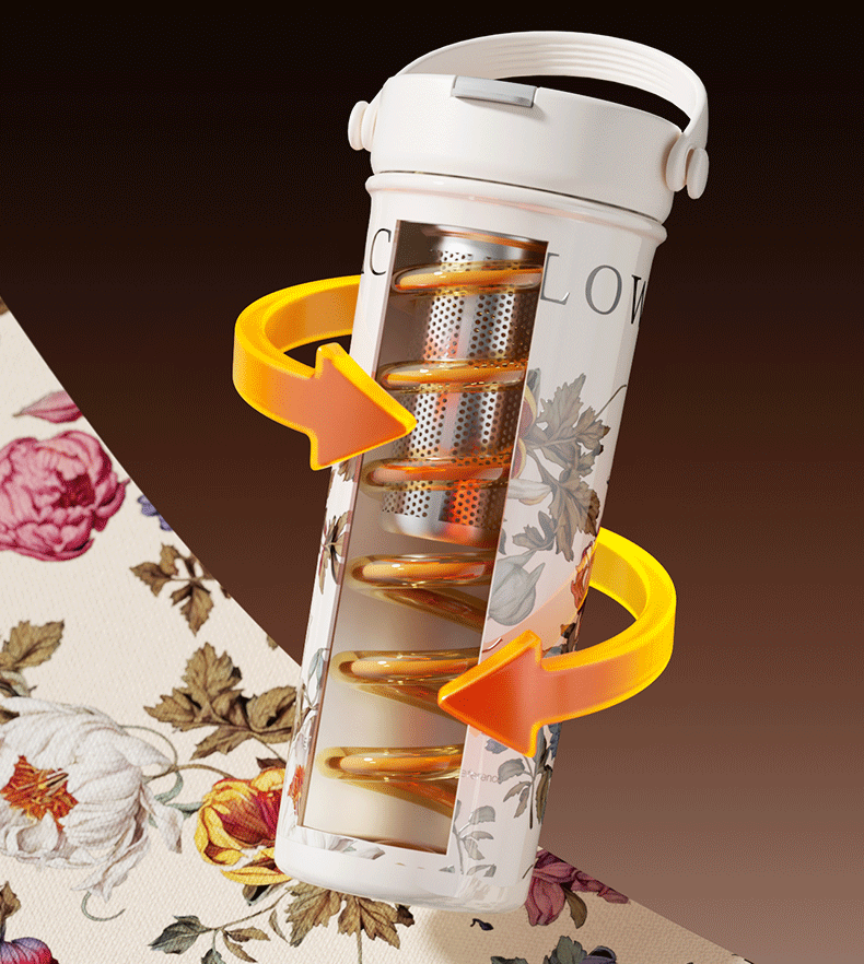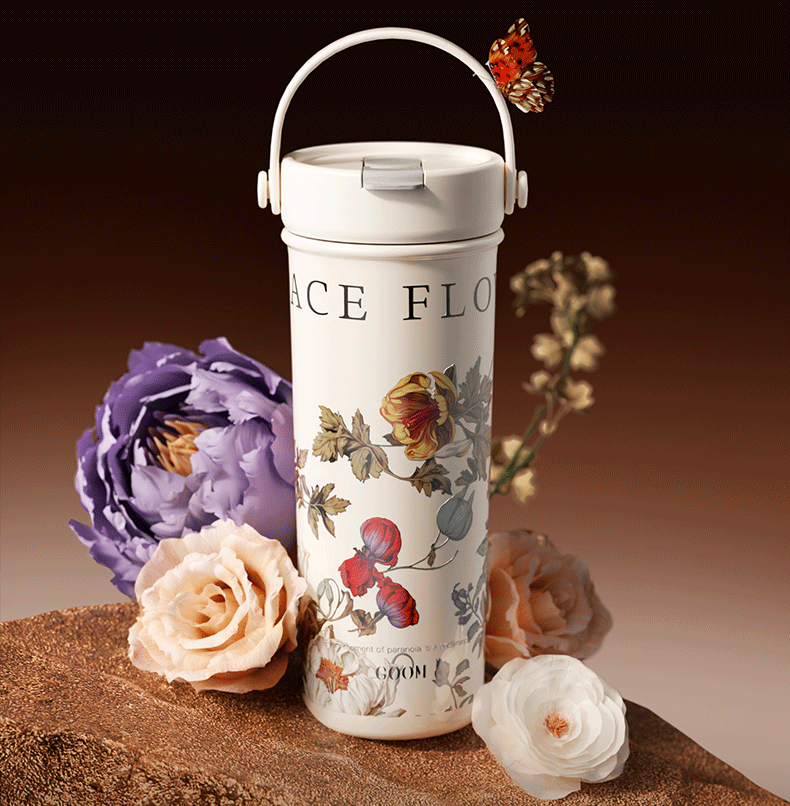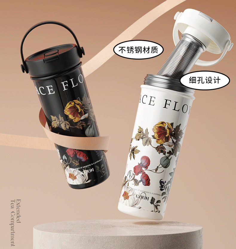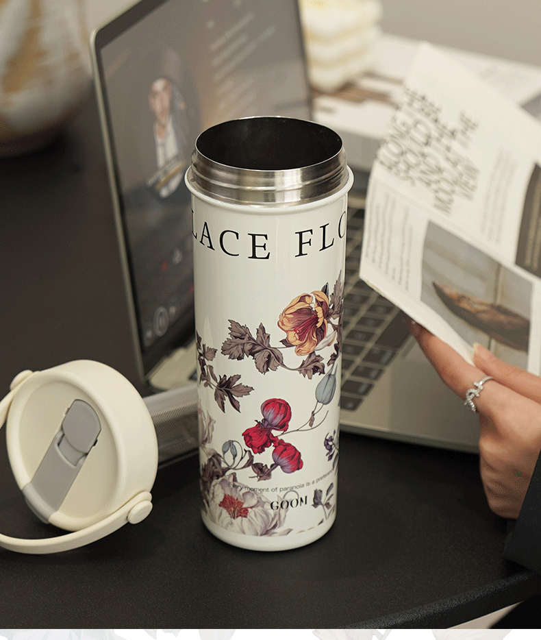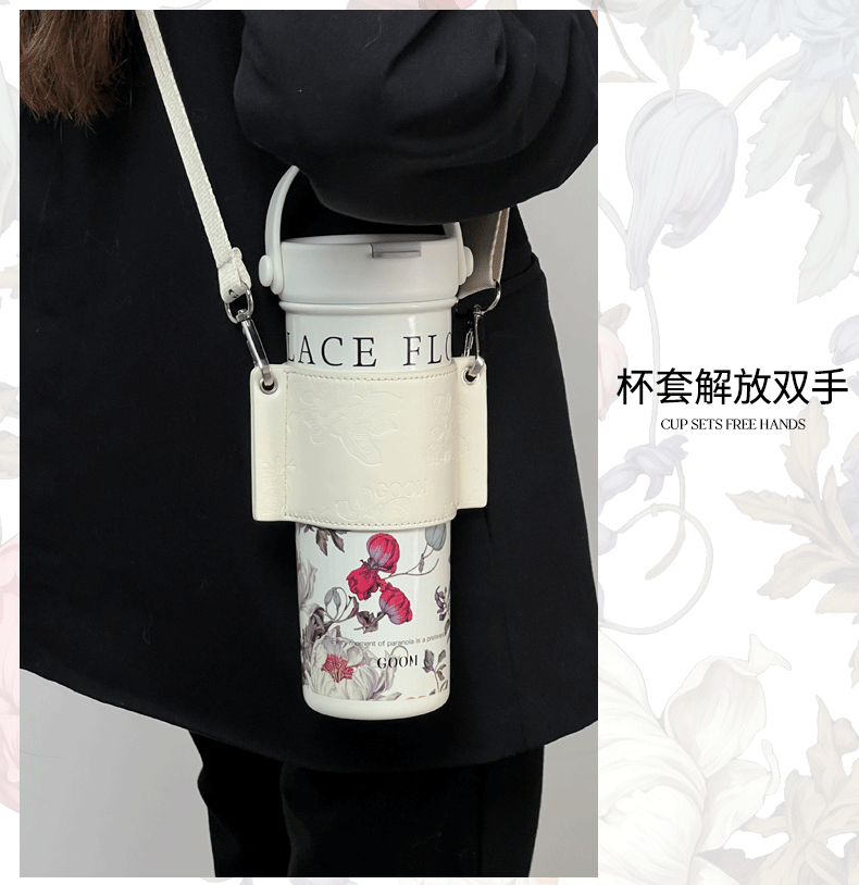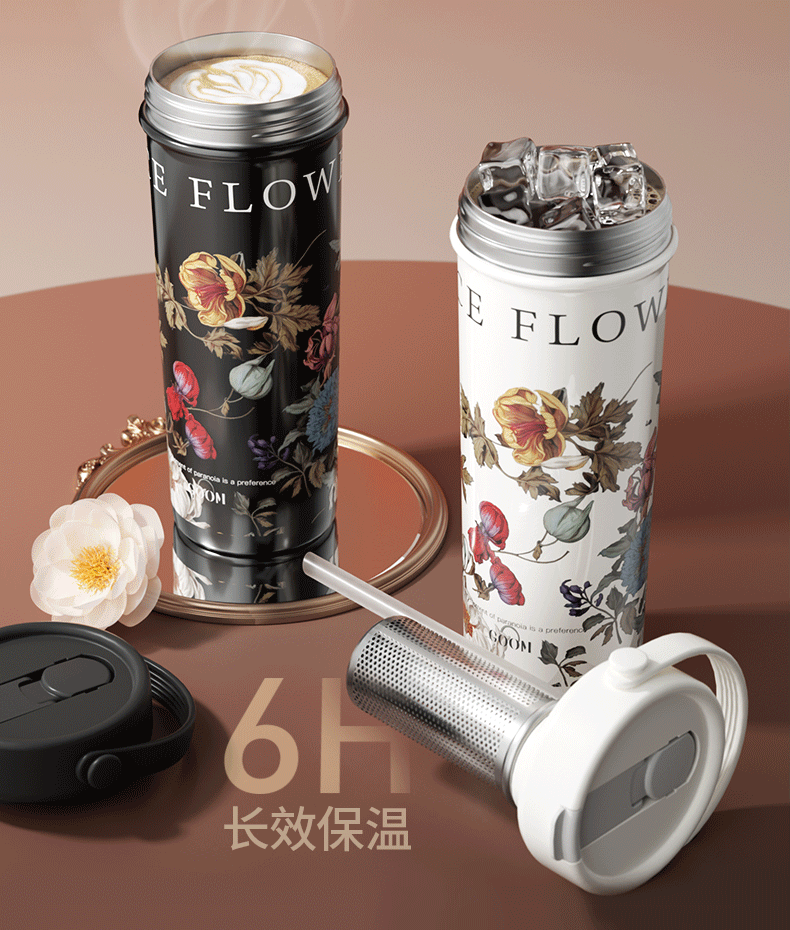 (巨邦佑)BJ+GOOM格沫艺术手绘系列保温杯600ml 繁花/似锦 保温咖啡水杯吸管女生新款大容量高颜值泡茶实用礼物