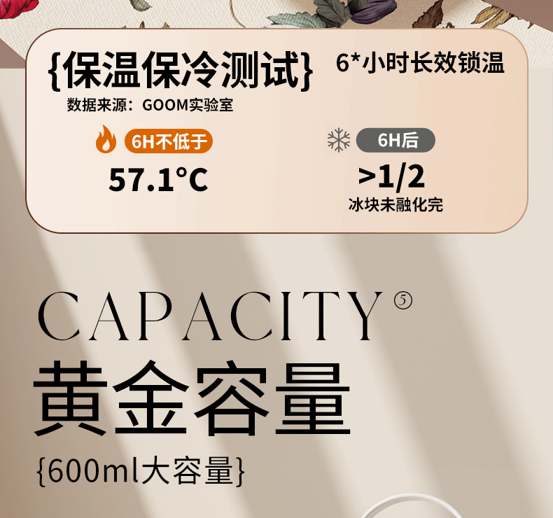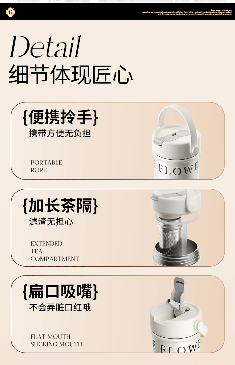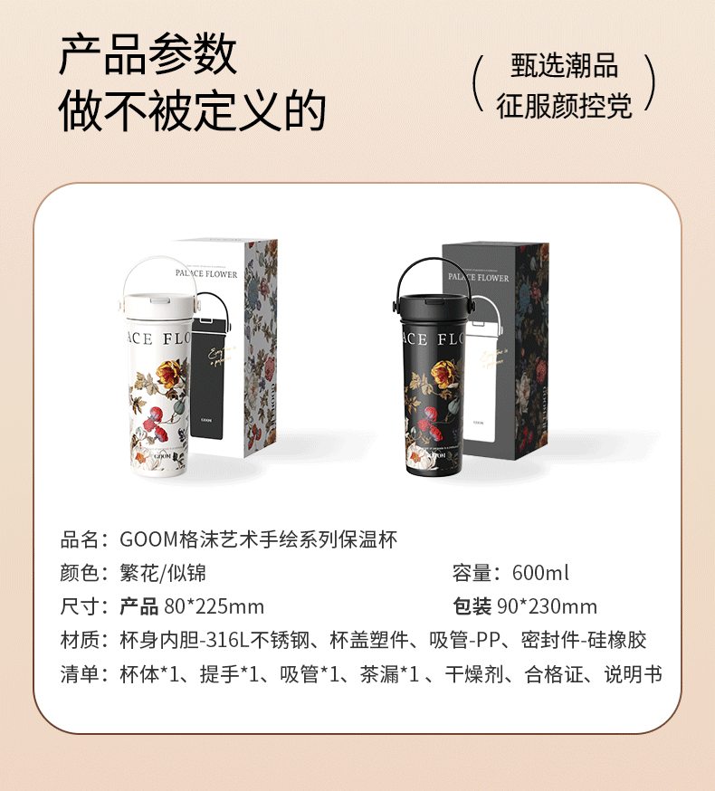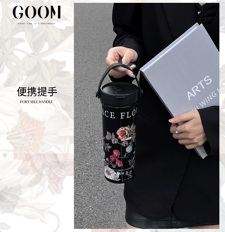 商品名称:(巨邦佑)BJ+GOOM格沫艺术手绘系列保温杯600ml 繁花/似锦 保温咖啡水杯吸管女生新款大容量高颜值泡茶实用礼物