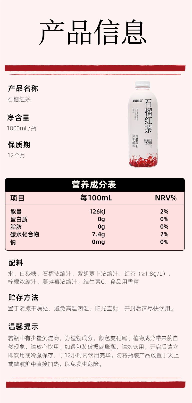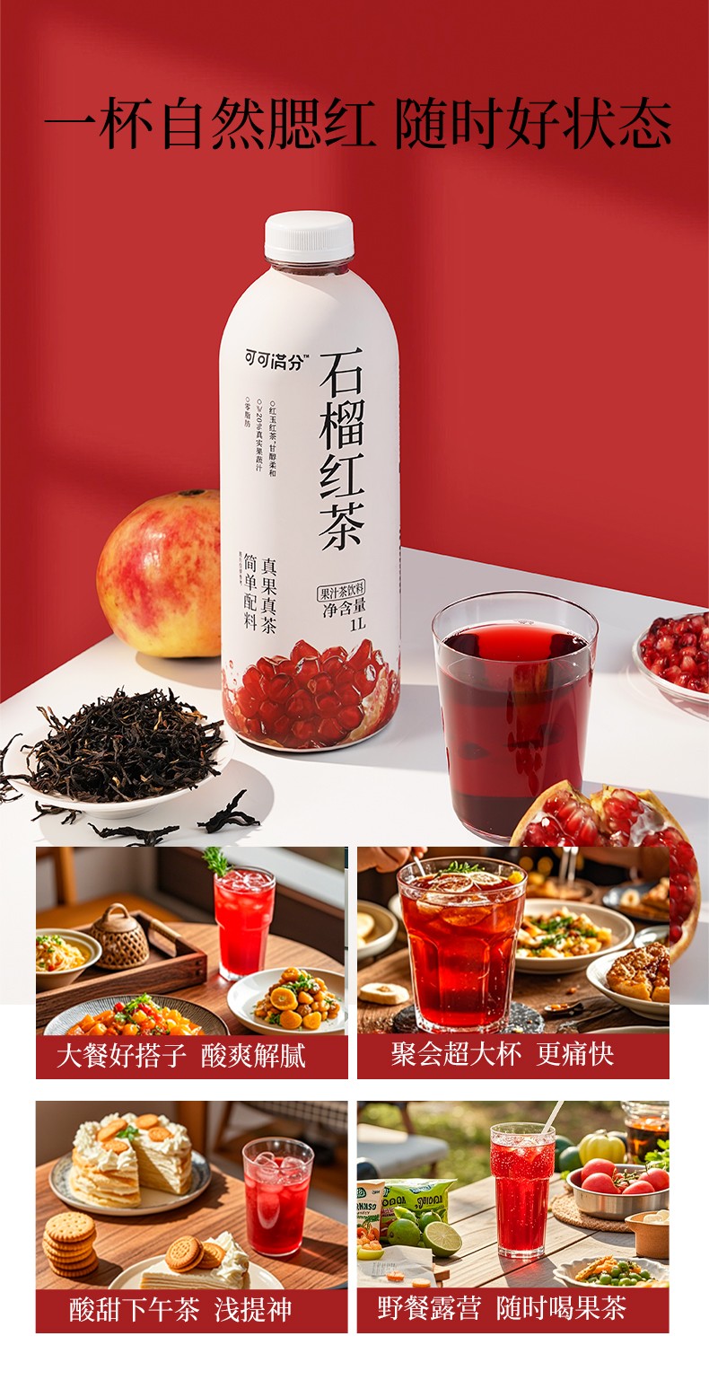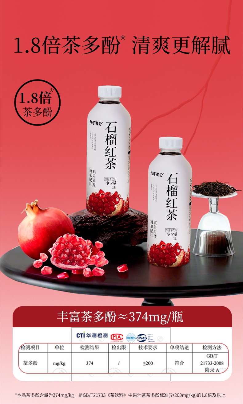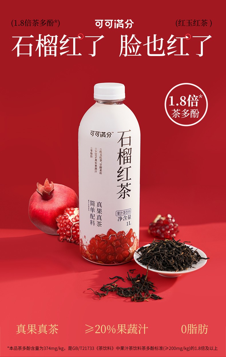 商品名称:(世星阳光)可可满分茉莉抹茶1L+石榴红茶1L 组合装 无糖饮品 调味茶饮料 0糖0卡0脂 清爽解腻大瓶装配料简单