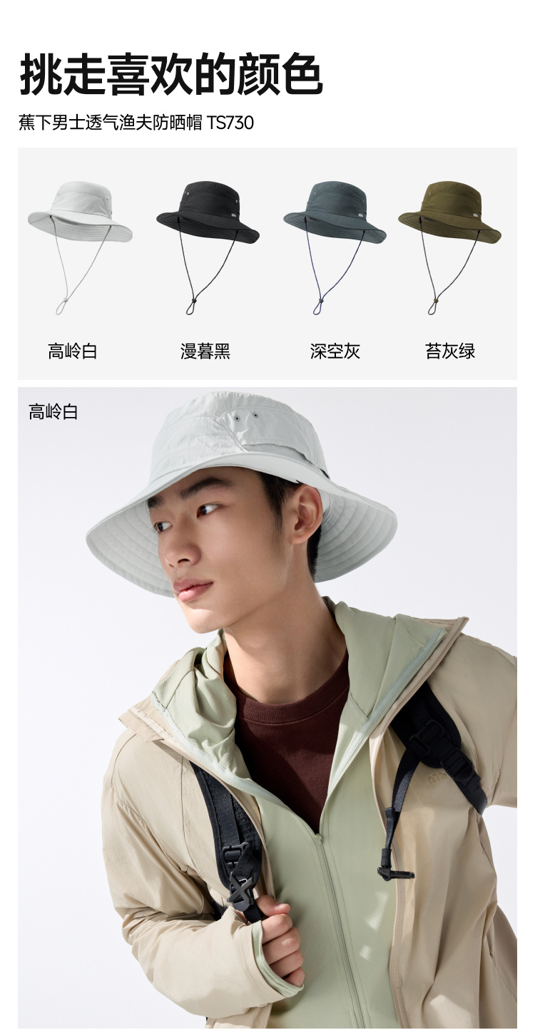 (汇景缘)蕉下男士透气渔夫防晒帽TS730遮阳帽子男渔夫帽防晒帽钓鱼帽太阳帽登山帽