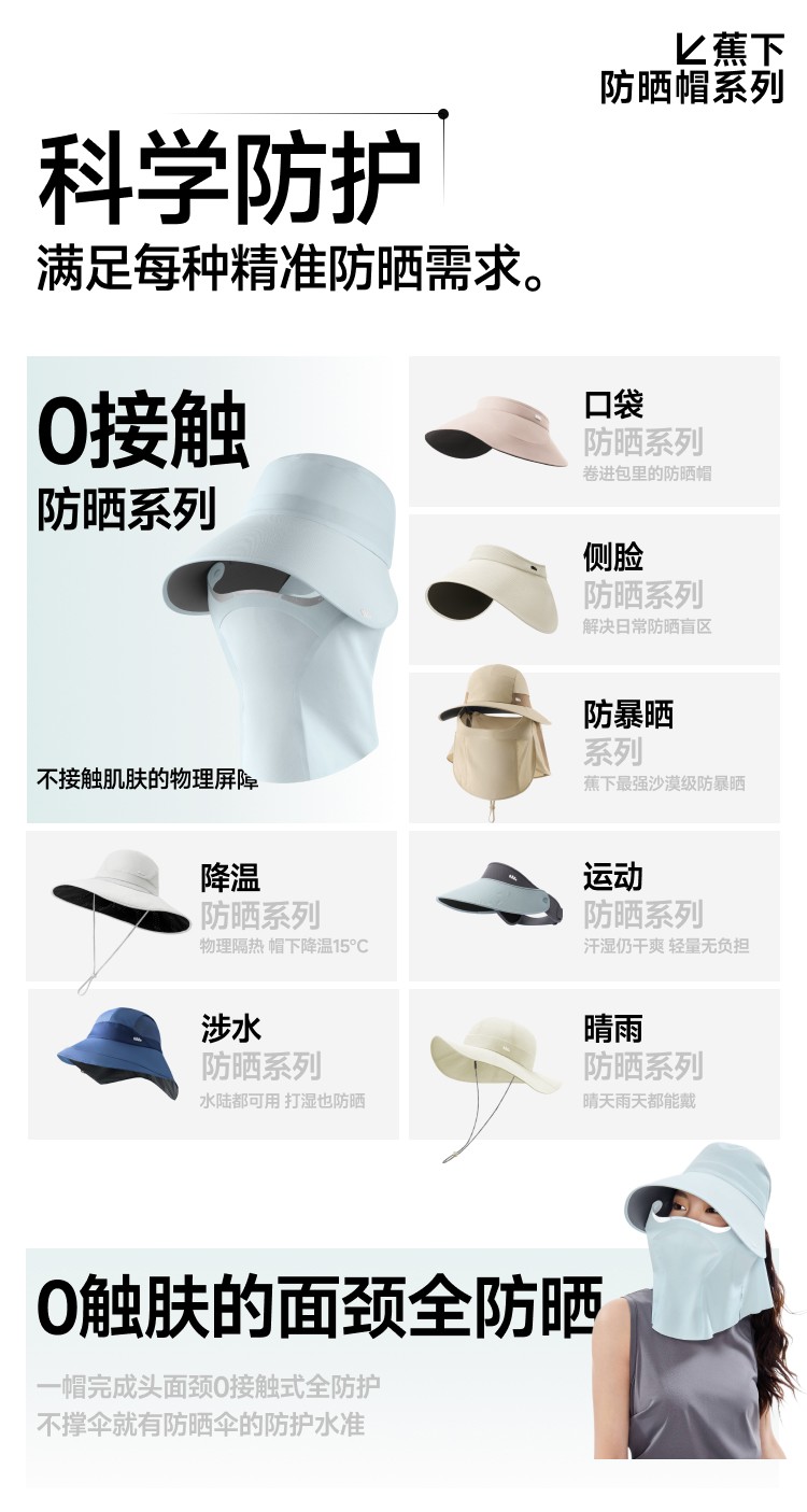 (汇景缘)蕉下女士零触全防护鸭舌防晒帽AS723防晒帽沙滩帽防紫外线防晒面罩