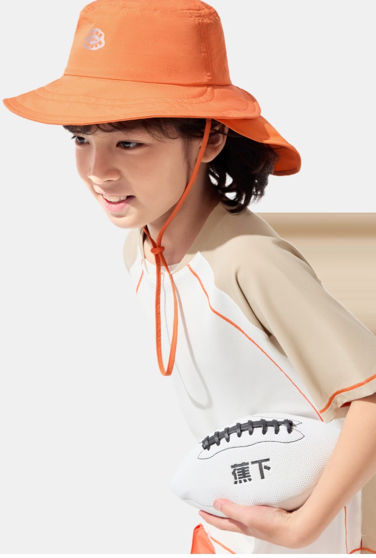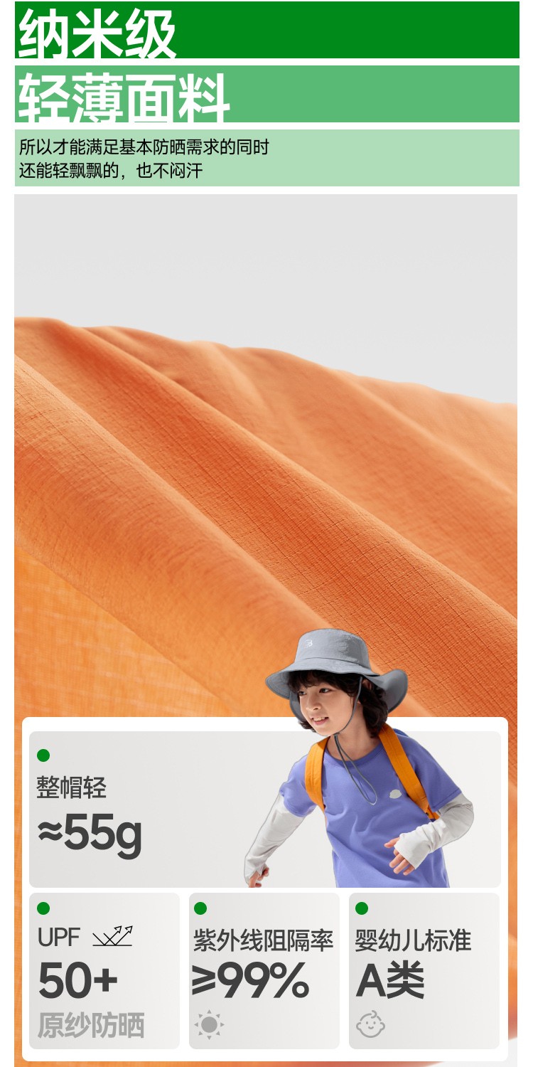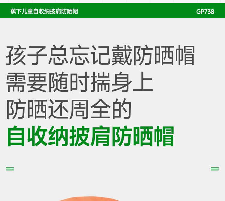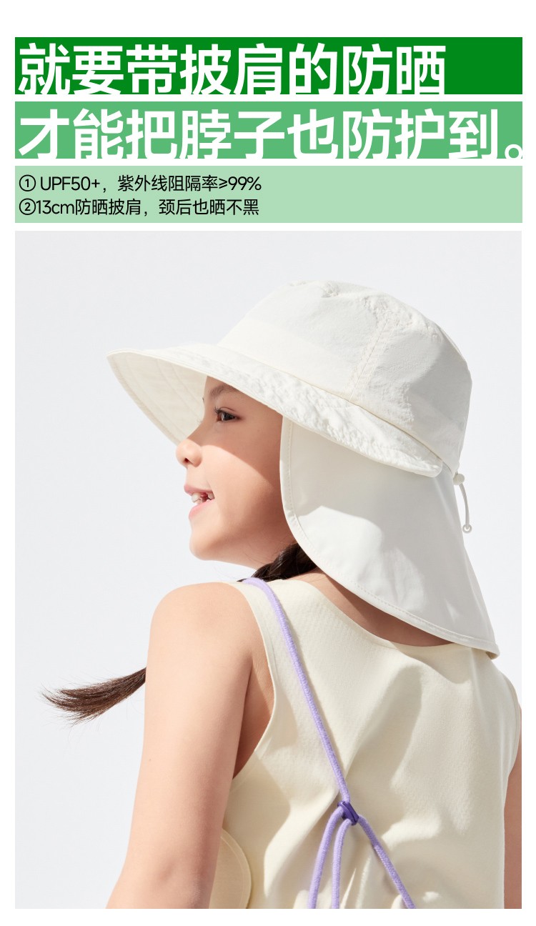 商品名称:(汇景缘)蕉下儿童自收纳披肩防晒帽GP738薄柿橘 男女童大帽檐防紫外线披肩宝宝遮阳帽
