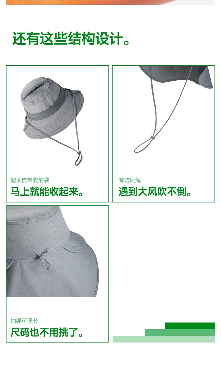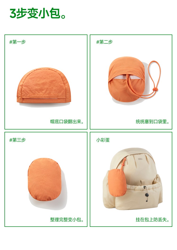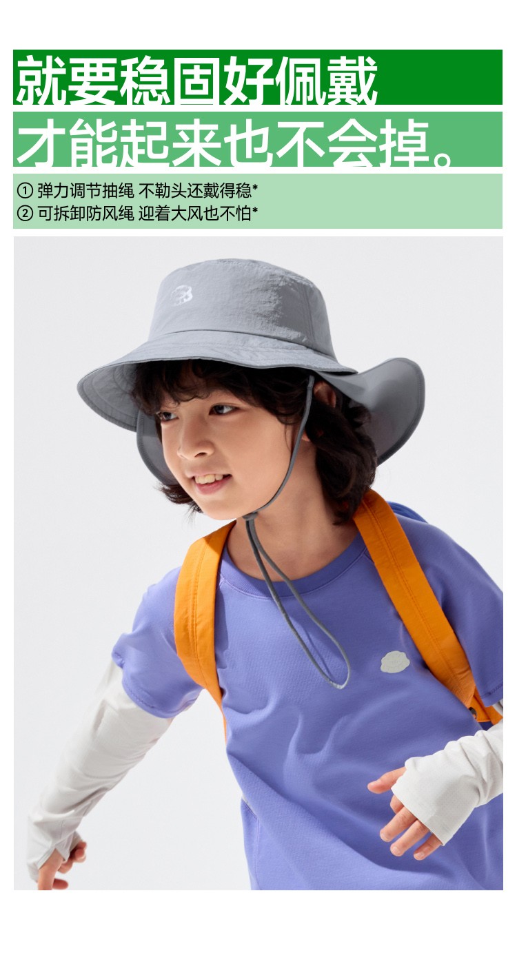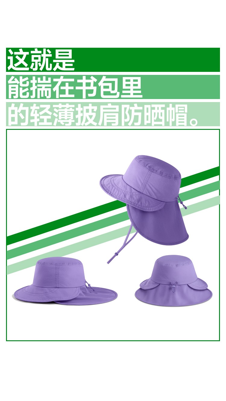 商品名称:(汇景缘)蕉下儿童自收纳披肩防晒帽GP738薄柿橘 男女童大帽檐防紫外线披肩宝宝遮阳帽