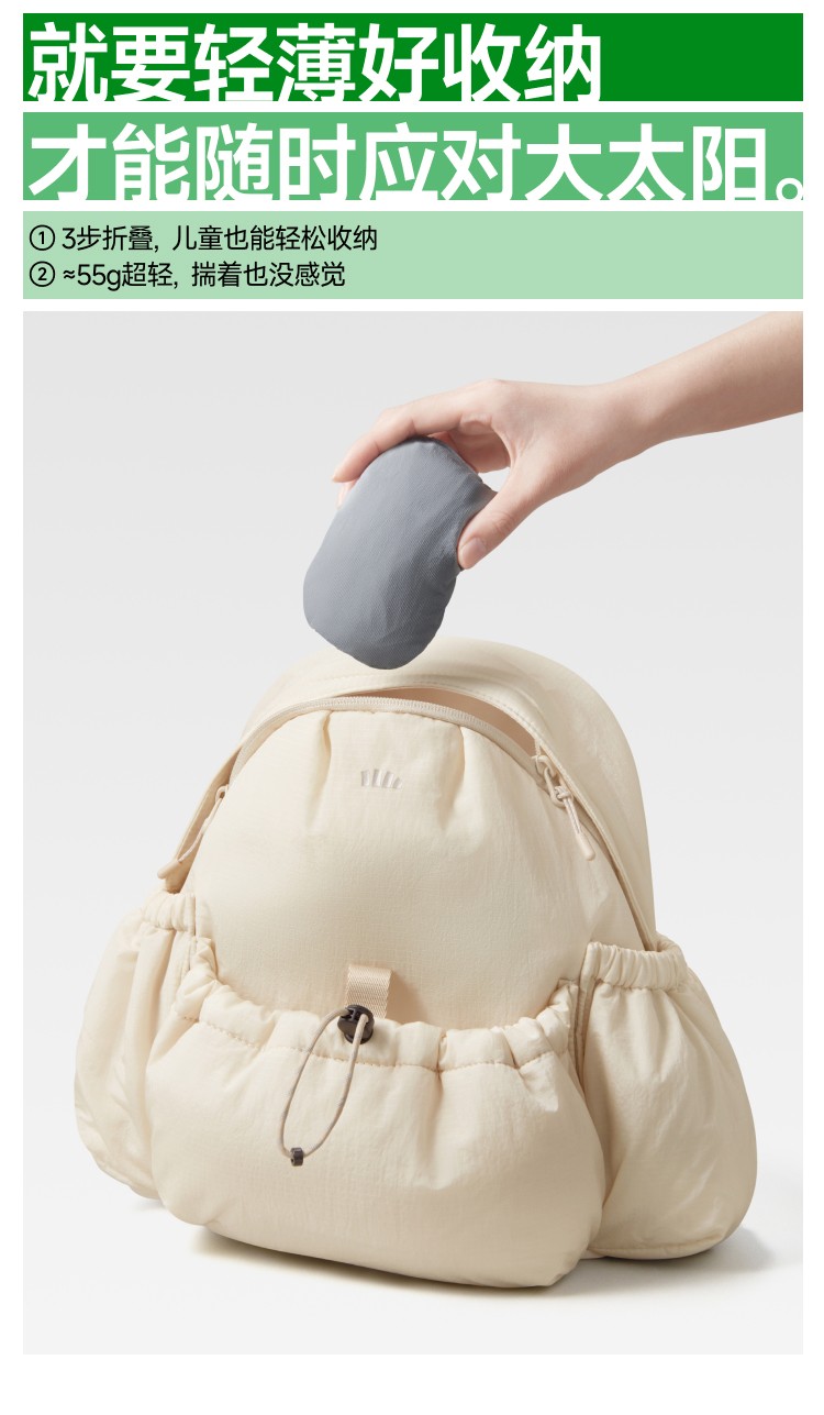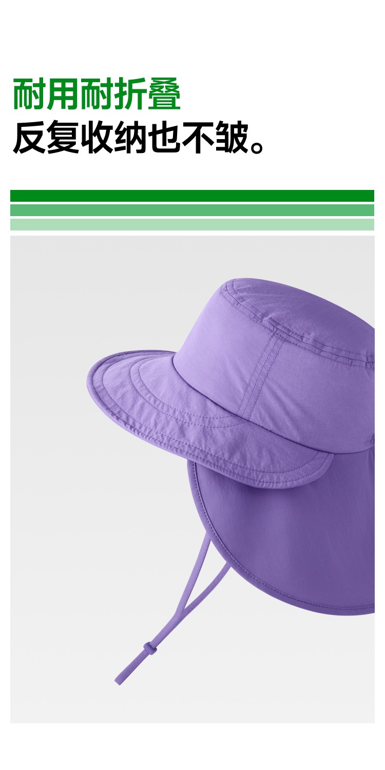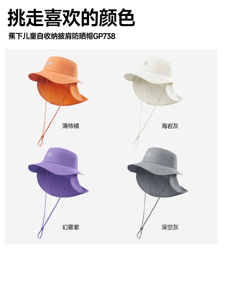 (汇景缘)蕉下儿童自收纳披肩防晒帽GP738薄柿橘 男女童大帽檐防紫外线披肩宝宝遮阳帽