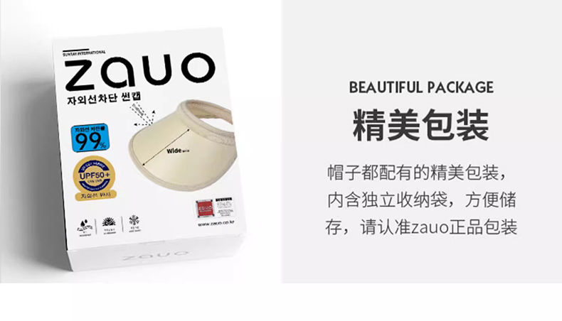 商品名称:(汇景缘)(F)zauo防晒空顶帽12cm版白色 均码【程潇代言】夏季防紫外线沙滩空顶帽大帽檐户外