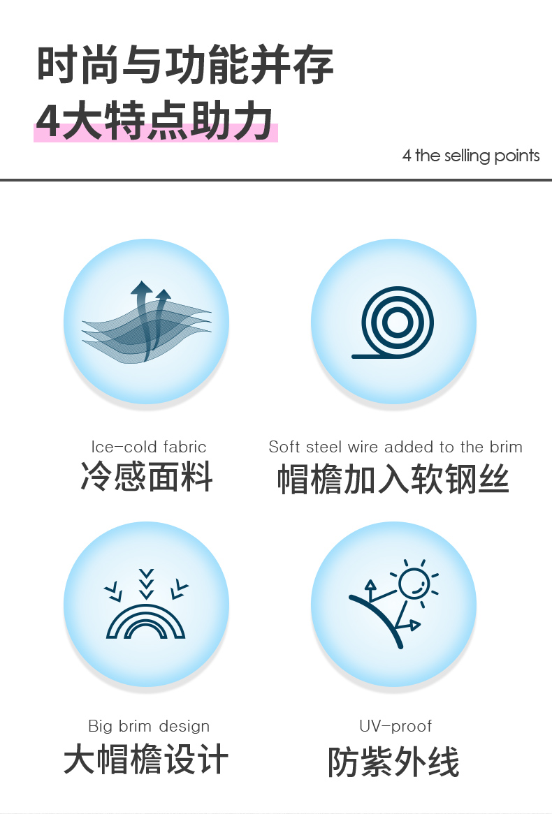 商品名称:(汇景缘)(F)zauo冷感防晒渔夫帽粉色 均码防晒渔夫帽夏季冷感女大帽檐防紫外线遮脸遮阳帽太阳帽子