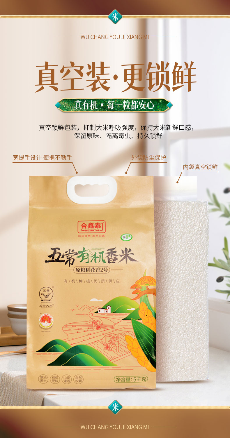 (世星阳光)合鑫泰五常有机香米(原料稻花香2号)5KG 闻着香 颗粒饱满 有机从源头开始 一年一季 自然种植 真空装更锁鲜