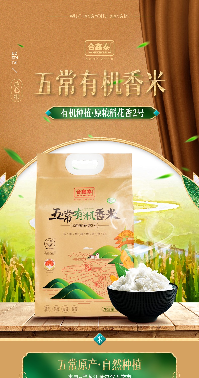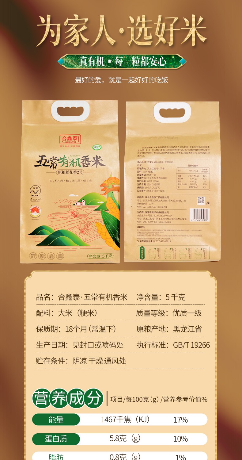 商品名称:(世星阳光)合鑫泰五常有机香米(原料稻花香2号)5KG 闻着香 颗粒饱满 有机从源头开始 一年一季 自然种植 真空装更锁鲜
